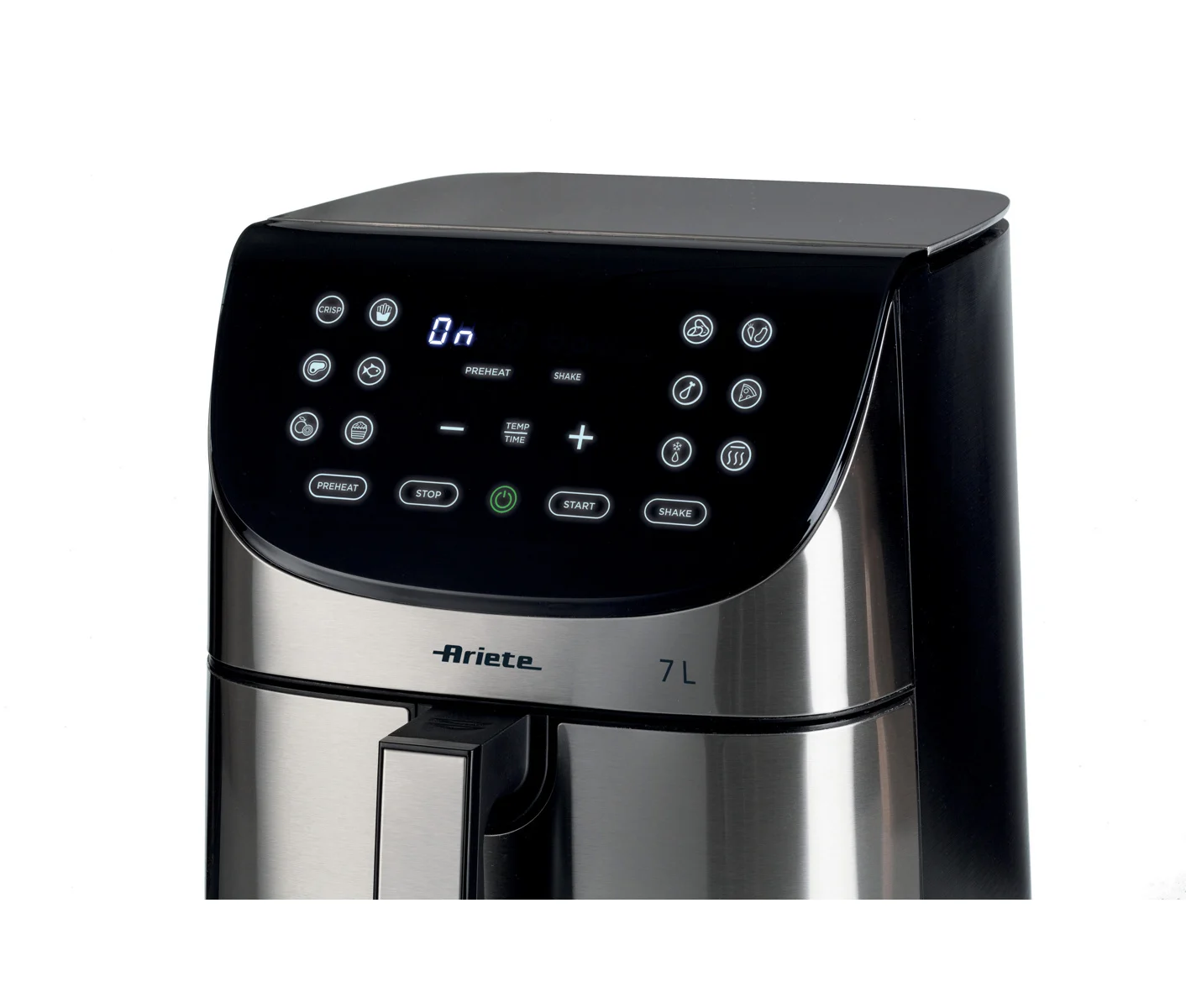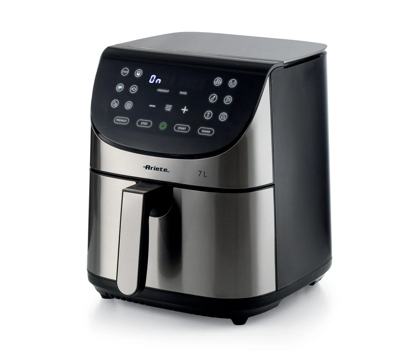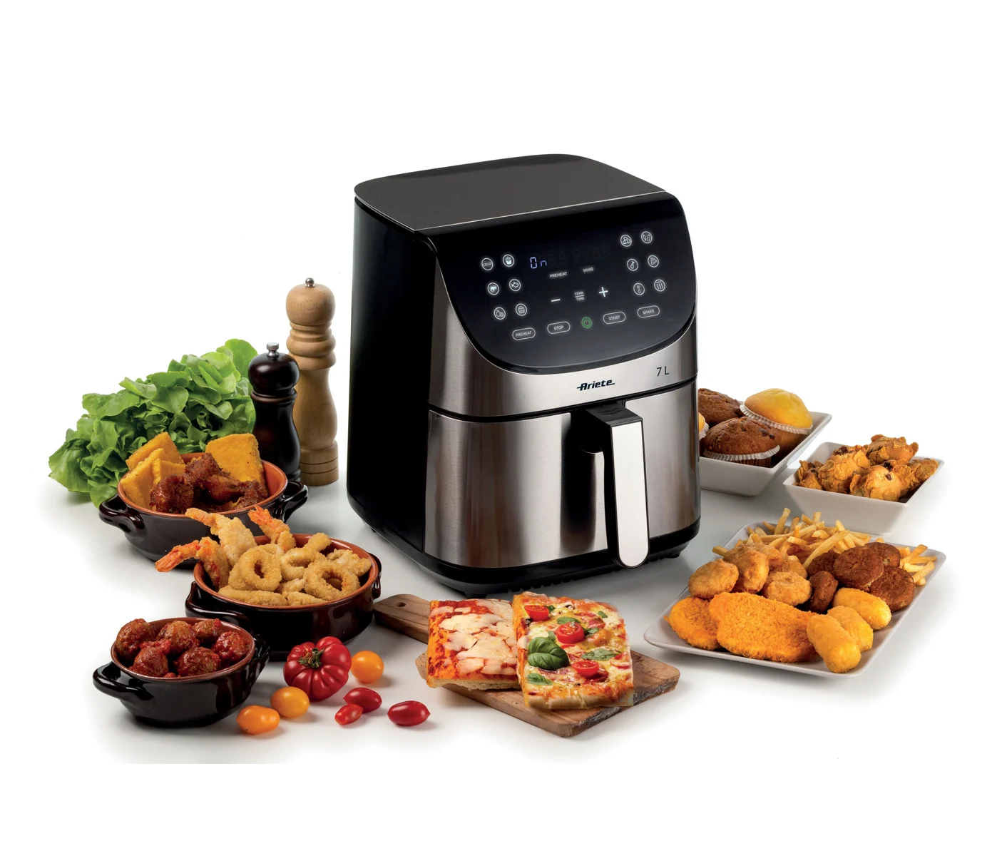 With the Air Fryer Metal 7L you can fry any dish in large quantities, using just a spoonful of oil to obtain healthy and tasty frying at the same time. Thanks to the large 7 L basket, with Ariete's Airy Fryer Metal 7L you can cook up to 2 kg of fries at once! French fries, but not only, also croquettes, fish, meat and many other breaded foods, both frozen and ready to fry, and fresh and freshly breaded, thanks to 12 pre-set programs.