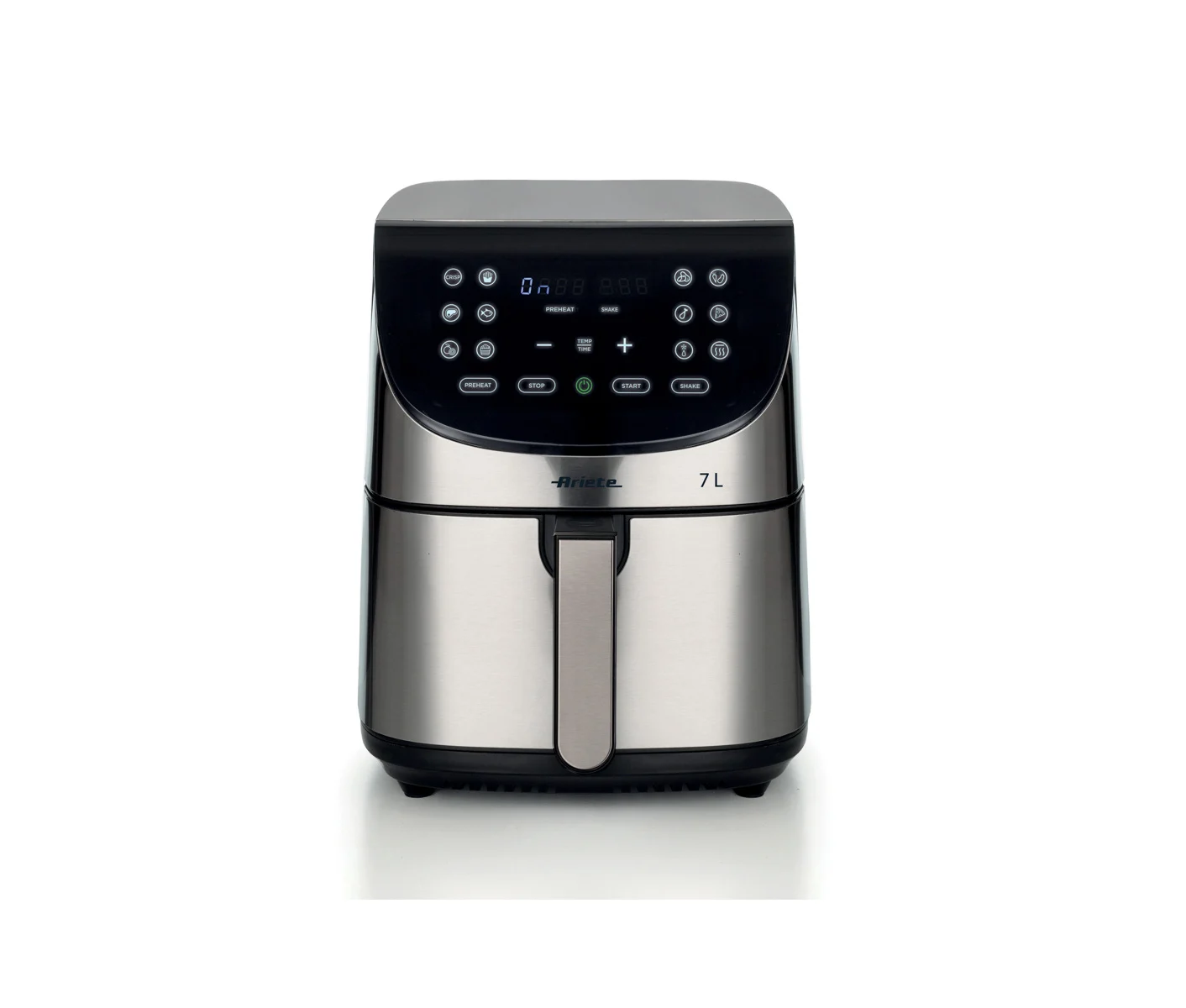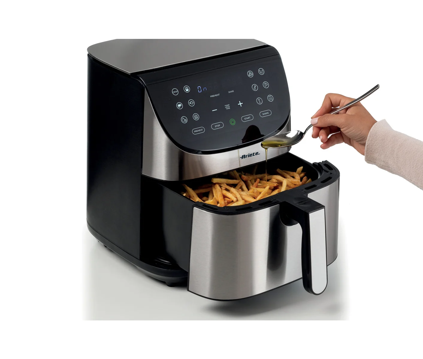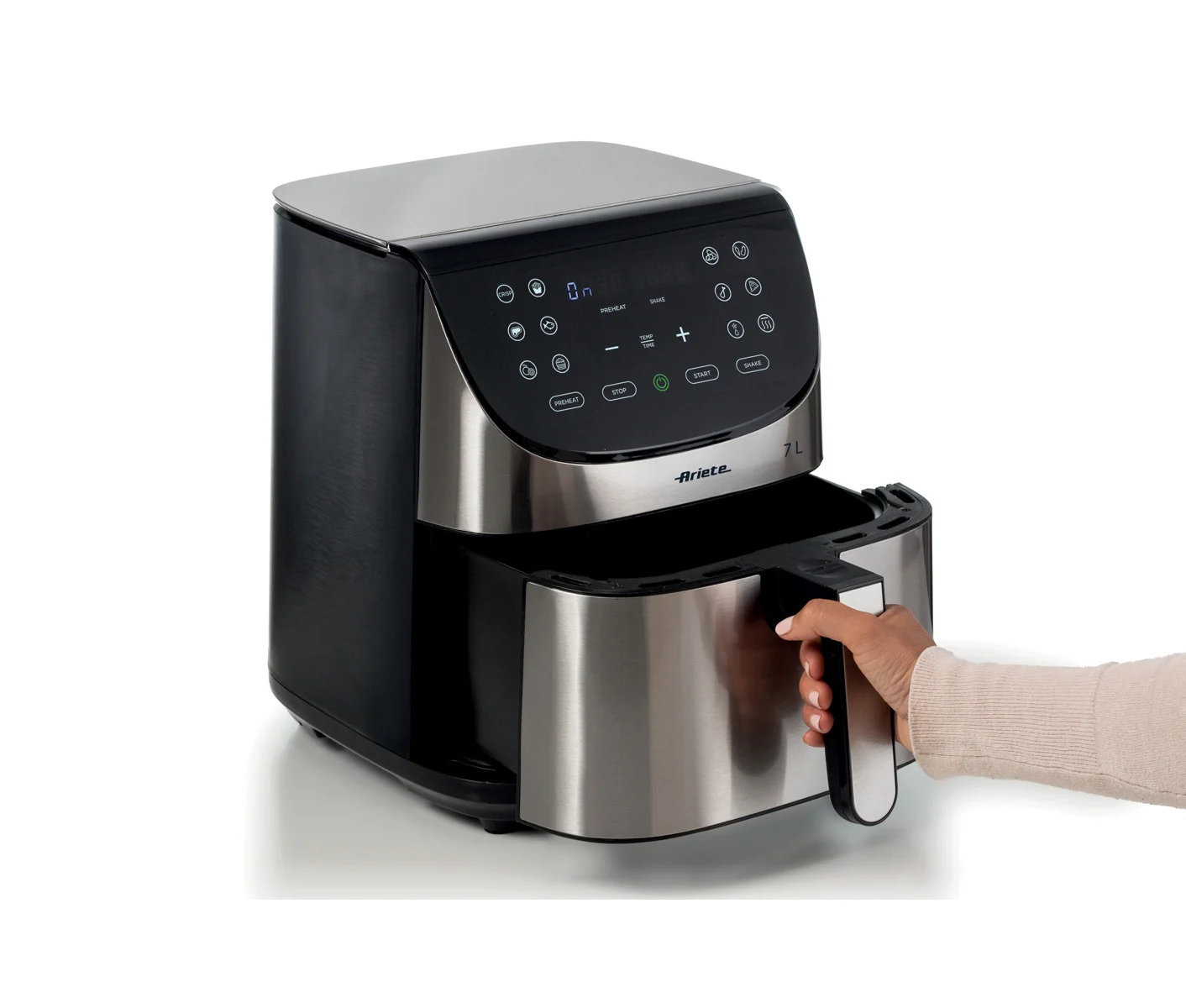 With the Air Fryer Metal 7L you can fry any dish in large quantities, using just a spoonful of oil to obtain healthy and tasty frying at the same time. Thanks to the large 7 L basket, with Ariete's Airy Fryer Metal 7L you can cook up to 2 kg of fries at once! French fries, but not only, also croquettes, fish, meat and many other breaded foods, both frozen and ready to fry, and fresh and freshly breaded, thanks to 12 pre-set programs.