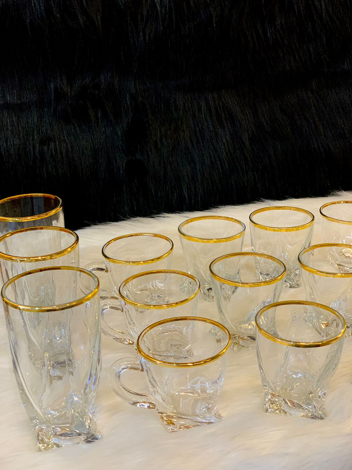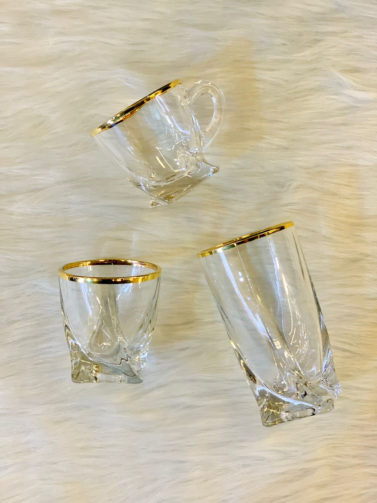 2M Acquadro 18 pieces 6 tea + 6 saucers + 6 cups laser engraving gilded set
