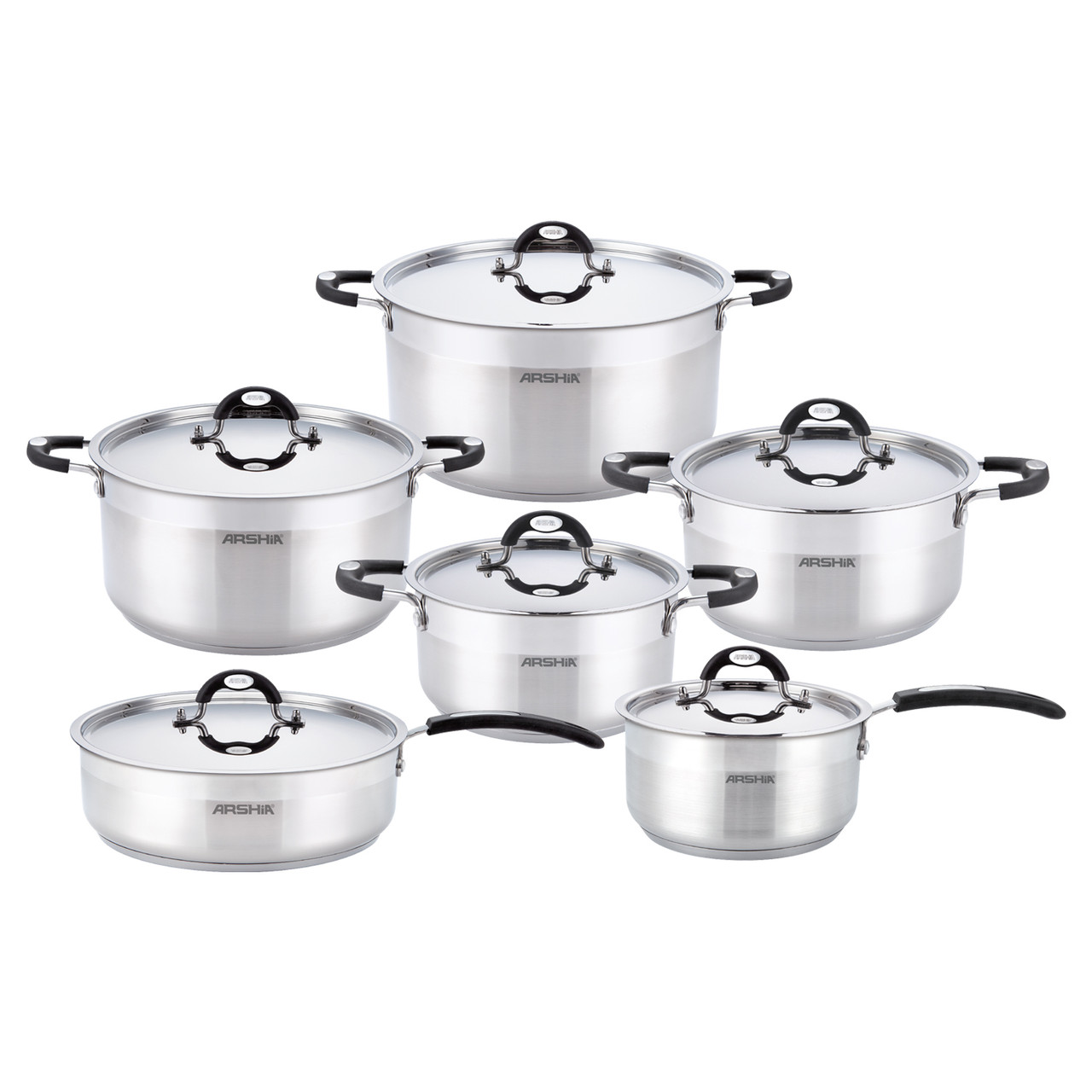 ARSHIA Stainless Steel Cookware Set – German Made – 12 Pieces + 4 Lids– Silicone-Coated Handles – Includes pots (20, 24, 28, 32 cm) + saucepans (18, 20 cm).