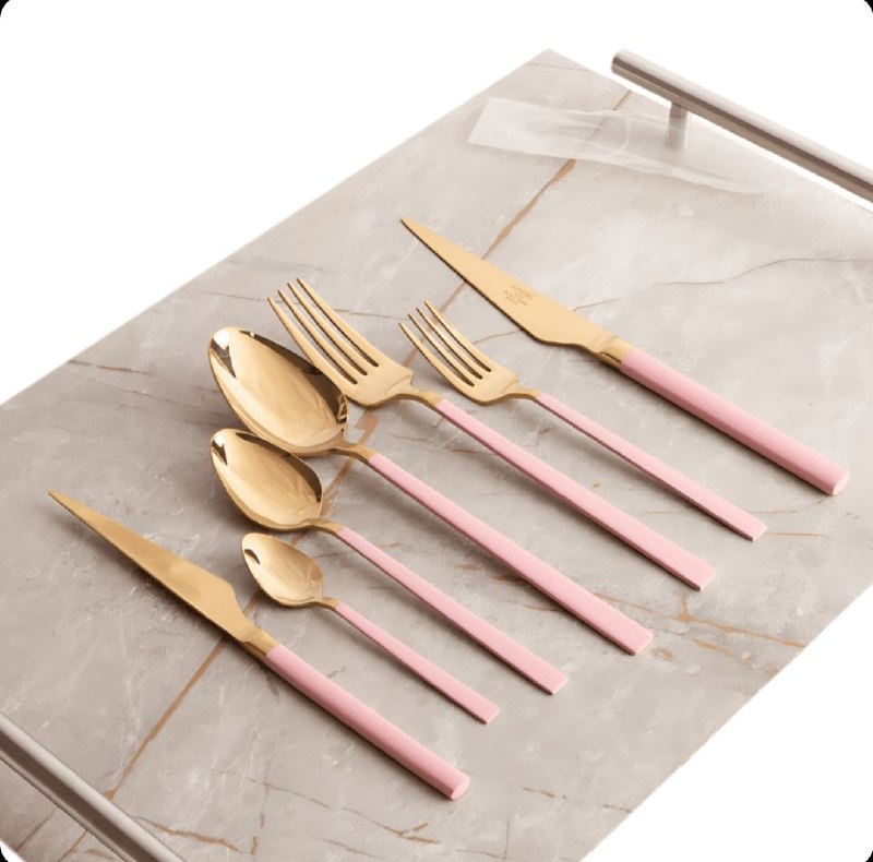 Elza Pink & Gold Titanium Turkish Cutlery Set, 89 pcs