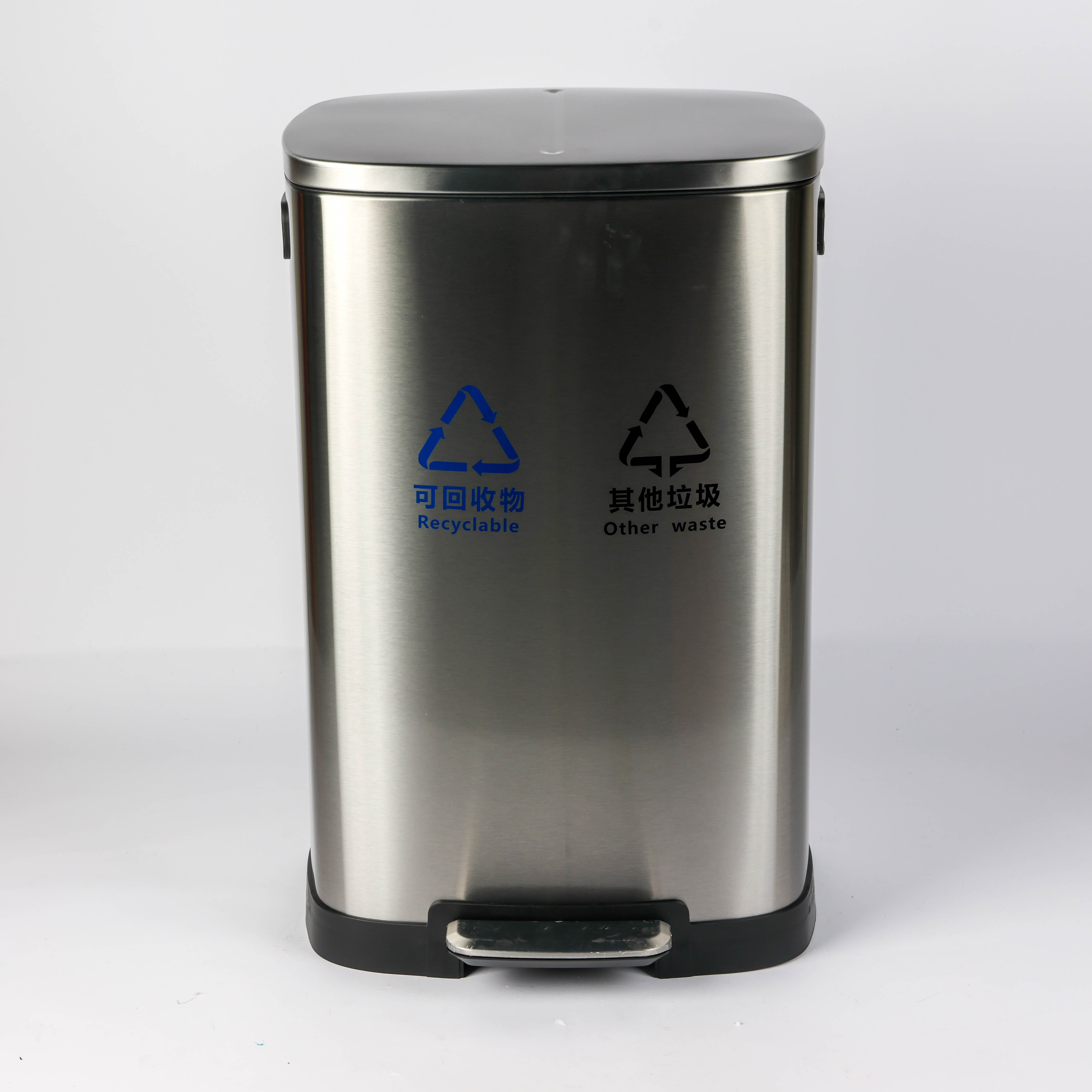 Double trash bin 36 liters (18+18) - stainless steel - foot pedal open - waste separation
