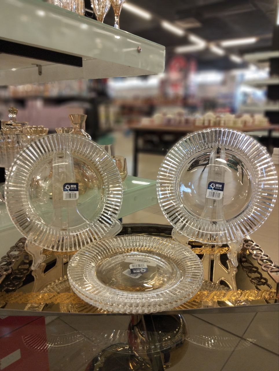 Living Home glass serving plate set, 4 pieces, with an elegant ribbed design – perfect for serving fruits and desserts with a luxurious touch. Transparent, practical, and adds a refined decorative acc