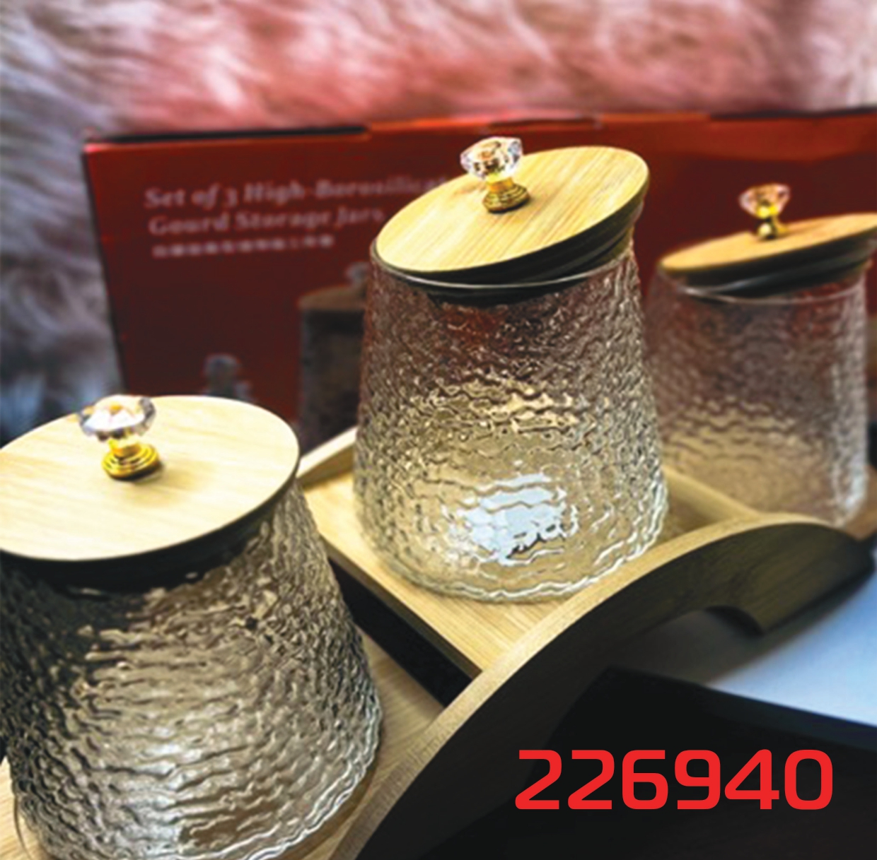 Facet Spice Set 3 Pieces Glass on Wooden Stand EE-35 V2