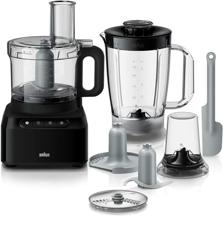 Braun PureEase Food Processor, 800 Watt, 2.1 Liter, Black - FP 3132 BK