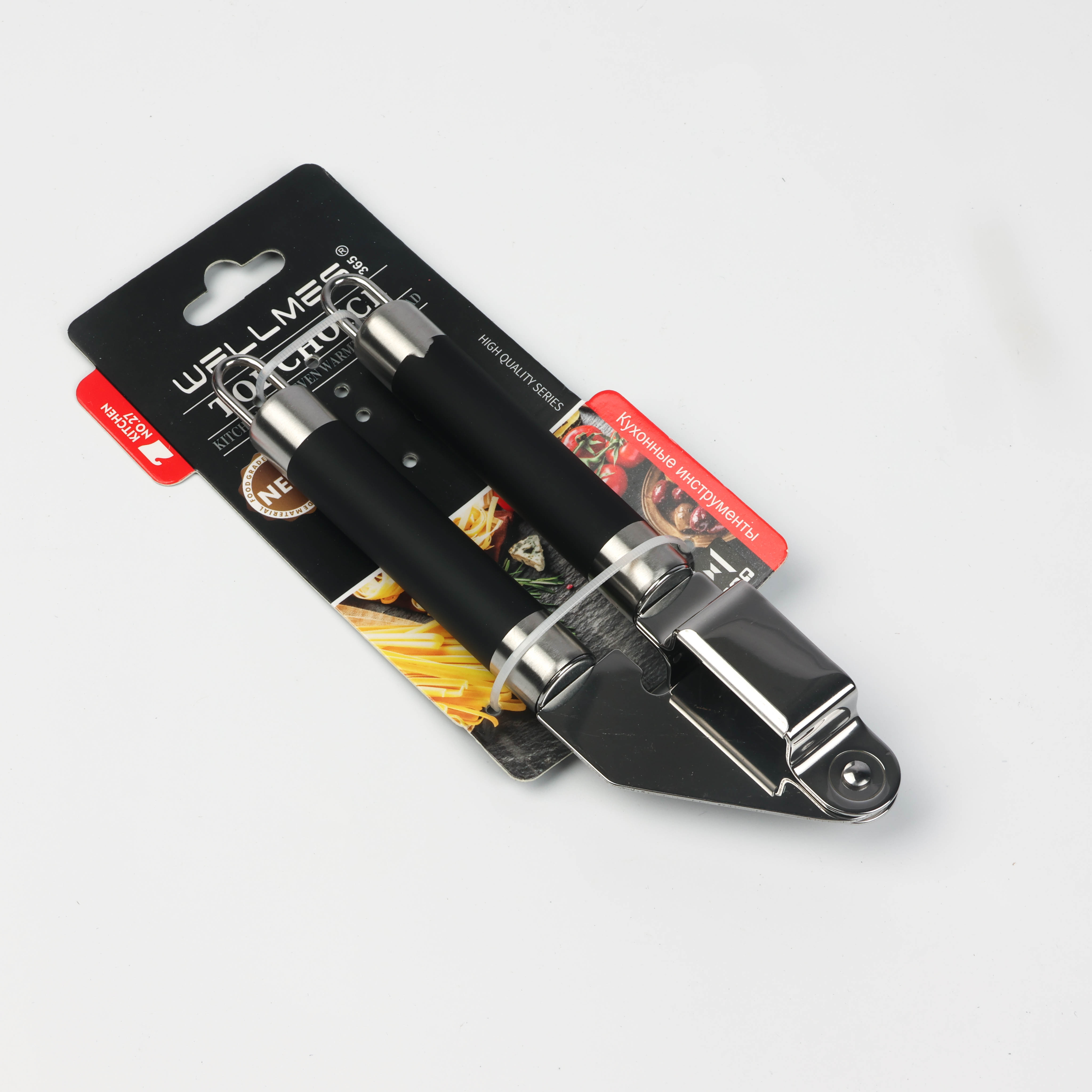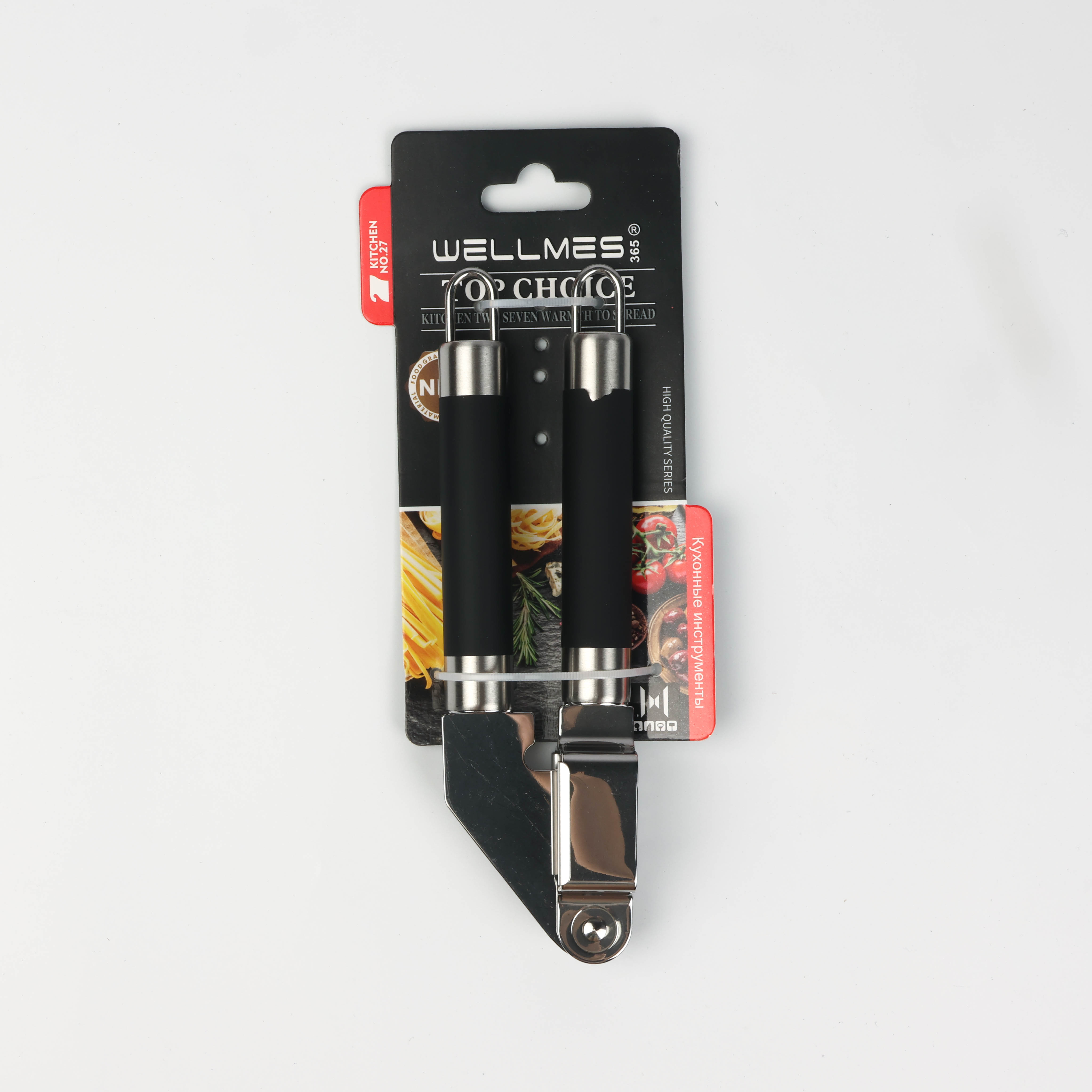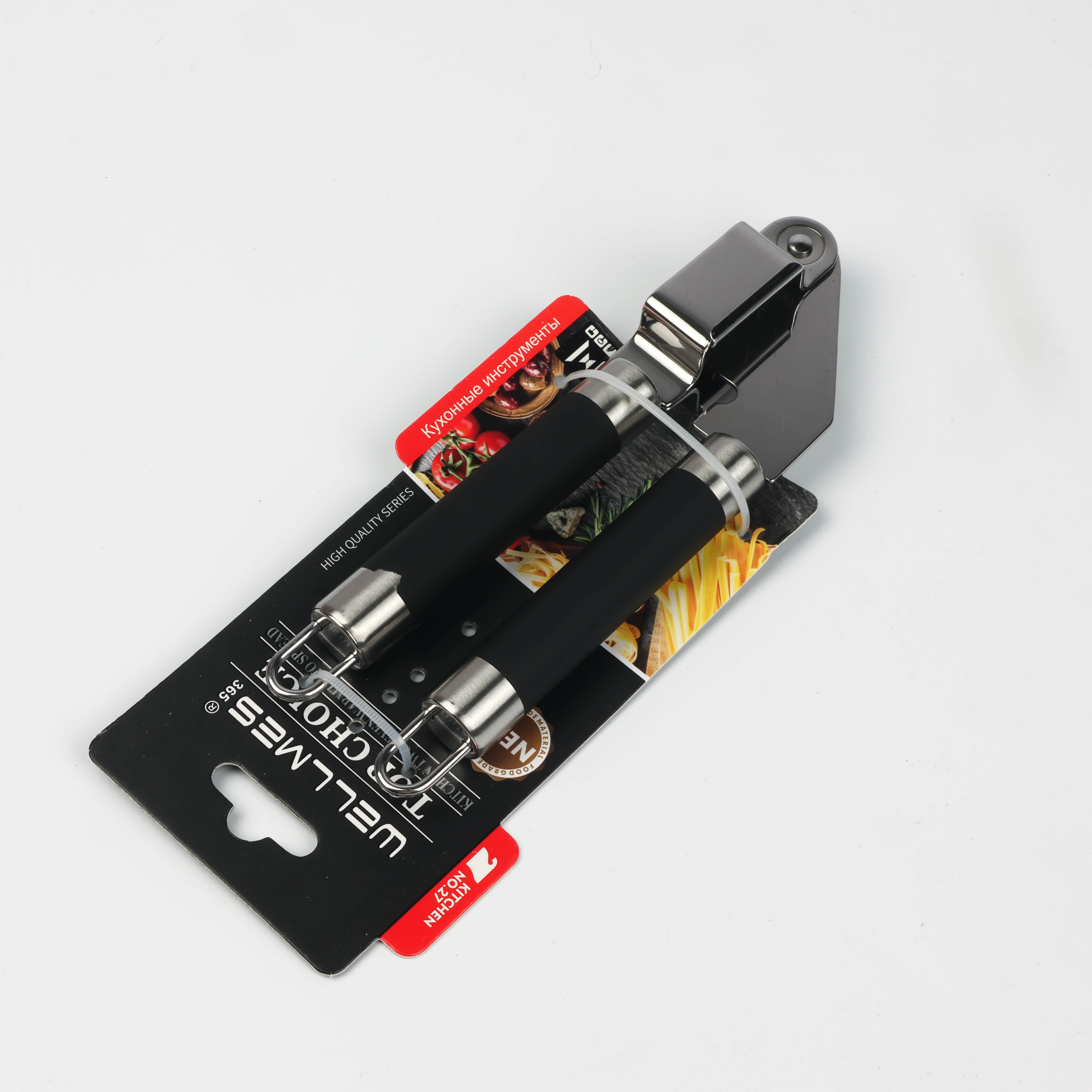 Garlic crusher made of rust-resistant metal with comfortable rubber handles Wellmes