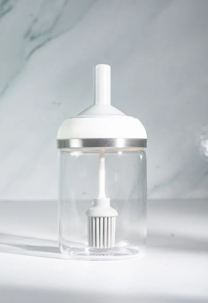 Glass oil bottle with lid and special distribution brush white color SK-7243