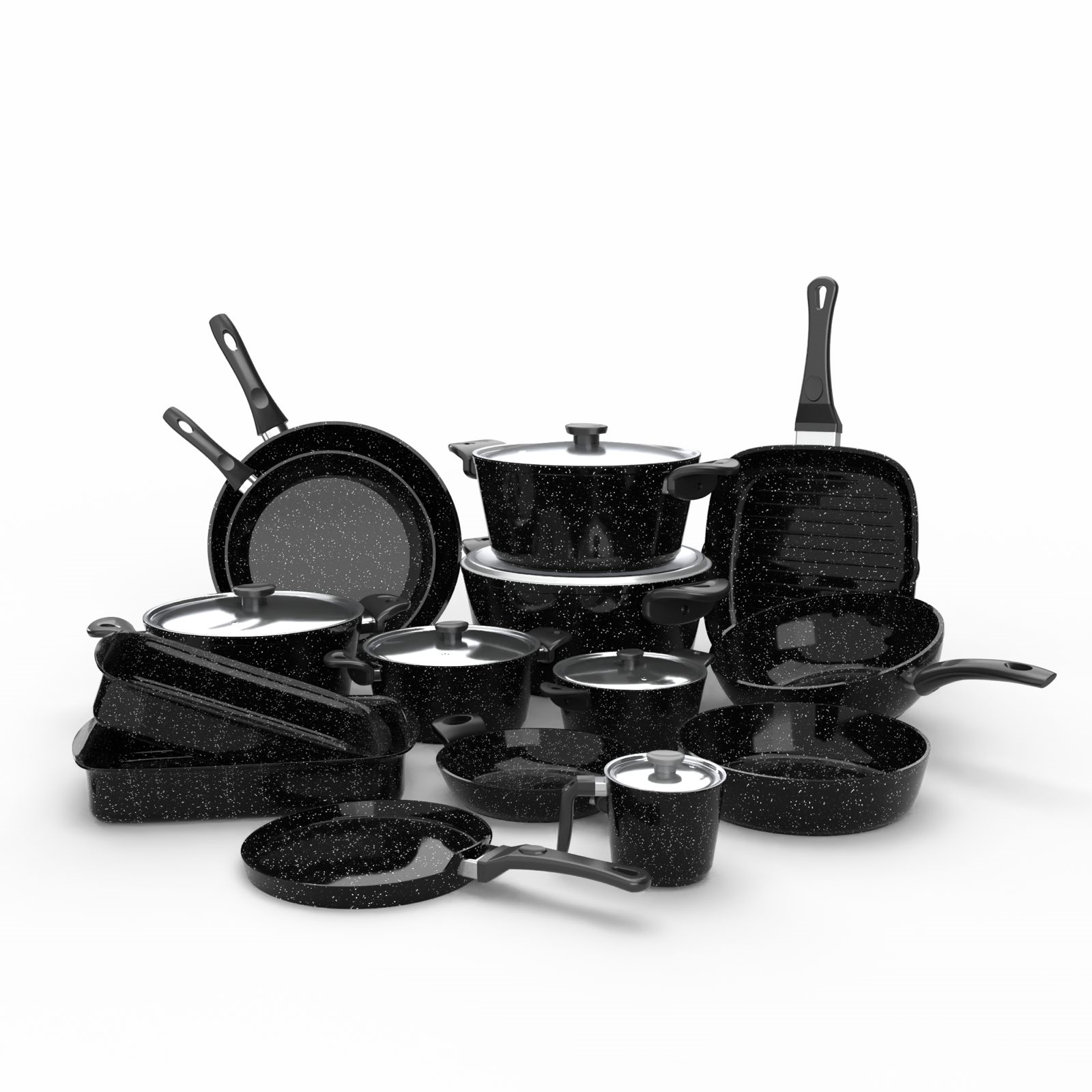 Granite Cookware Set Top Chef 21 Pieces Black Composition (Pots 18-20-24-26-30 / Frying Pans 24-30 / Wok 28 / Grill Pan 28 / Milk Pan 16 / Deep Frying Pan 30 / Crepe Pan 28 / Egg Plate 22 / Casserole
