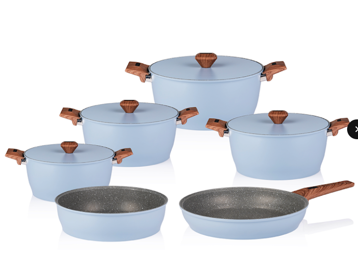 Granite Gigilli Cookware Set – 10 Pieces – 4 Pots (28-24-22-20 cm) + Frying Pan 26 cm + Oven Tray 28 cm – Aqua