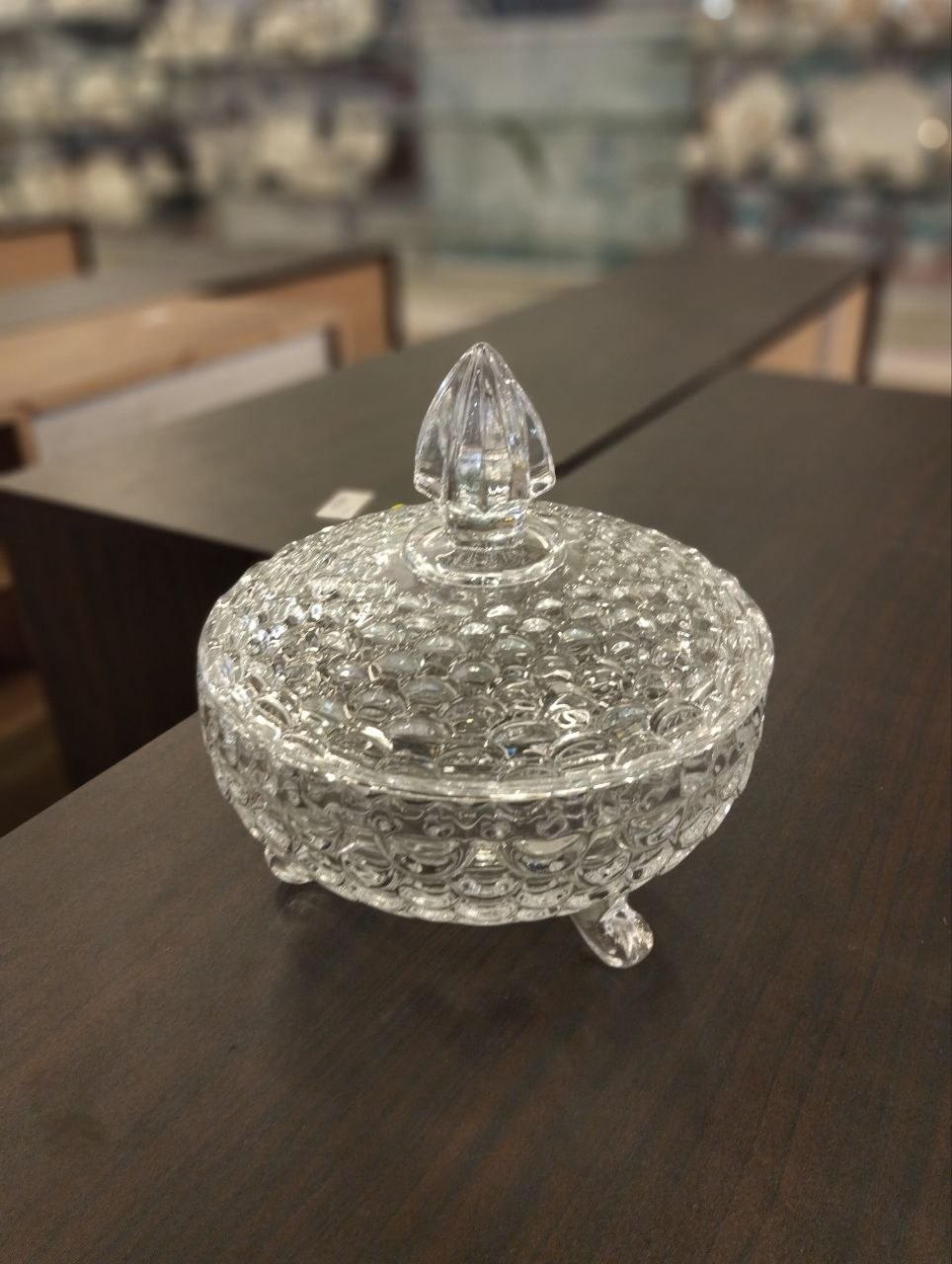 Living Home Crystal Glass Bonbonniere – Luxurious design with embossed bubble patterns and a ribbed-handle lid, crafted from thick transparent glass. Ideal for candies or as an elegant decorative piec