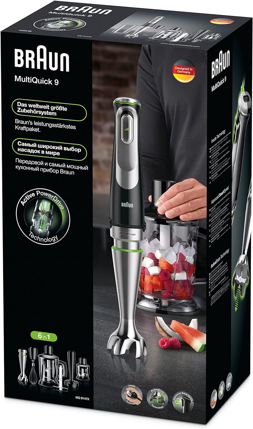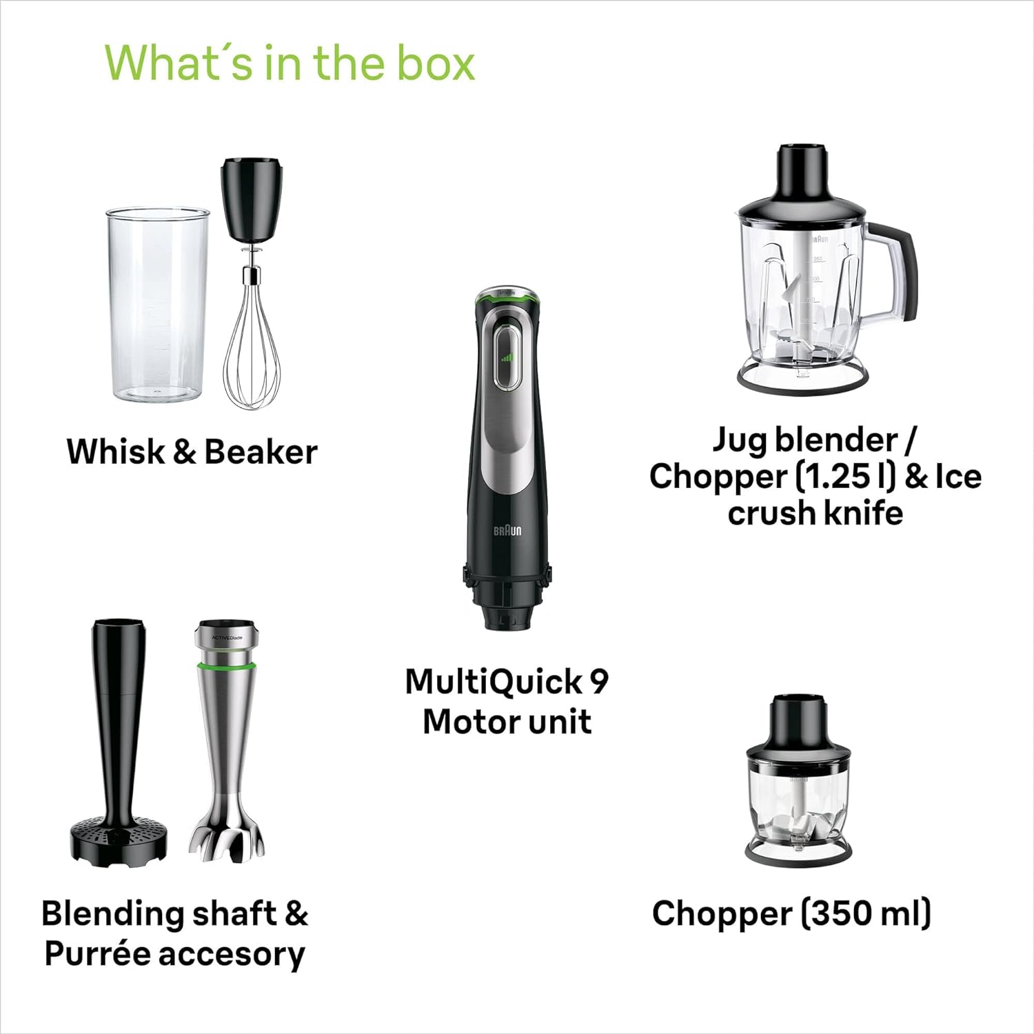 Braun MultiQuick 9 hand blender, 1200 watts, 600 ml, 350 ml chopper, black MQ9147X