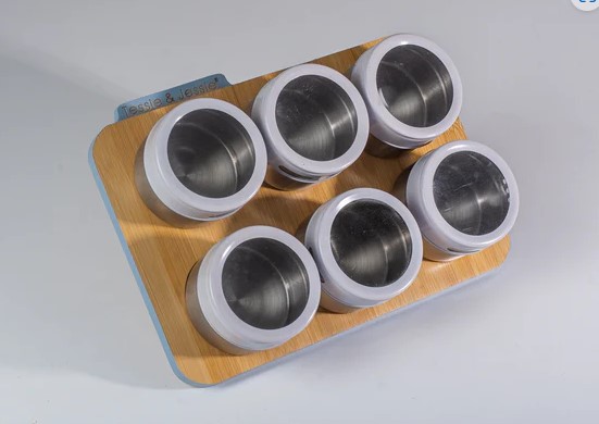 Tessie & Jessie Glass Spice Set 6 Pieces with Wooden Base SK-9369