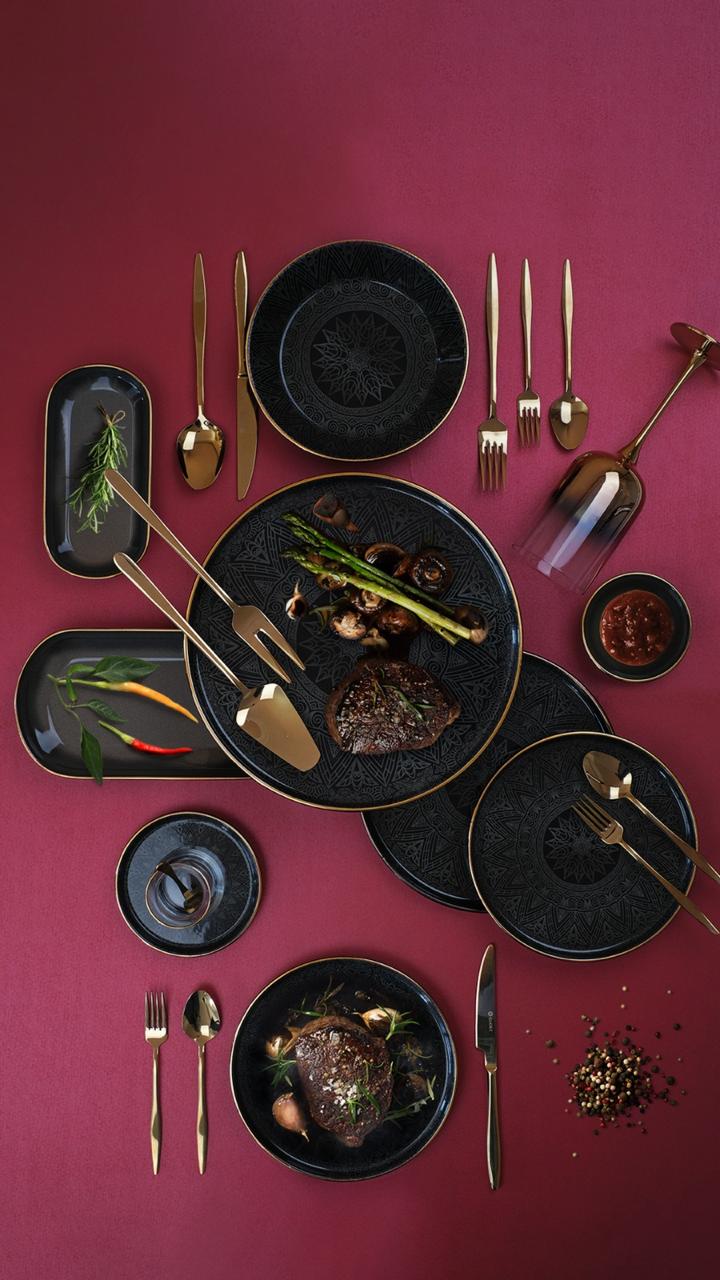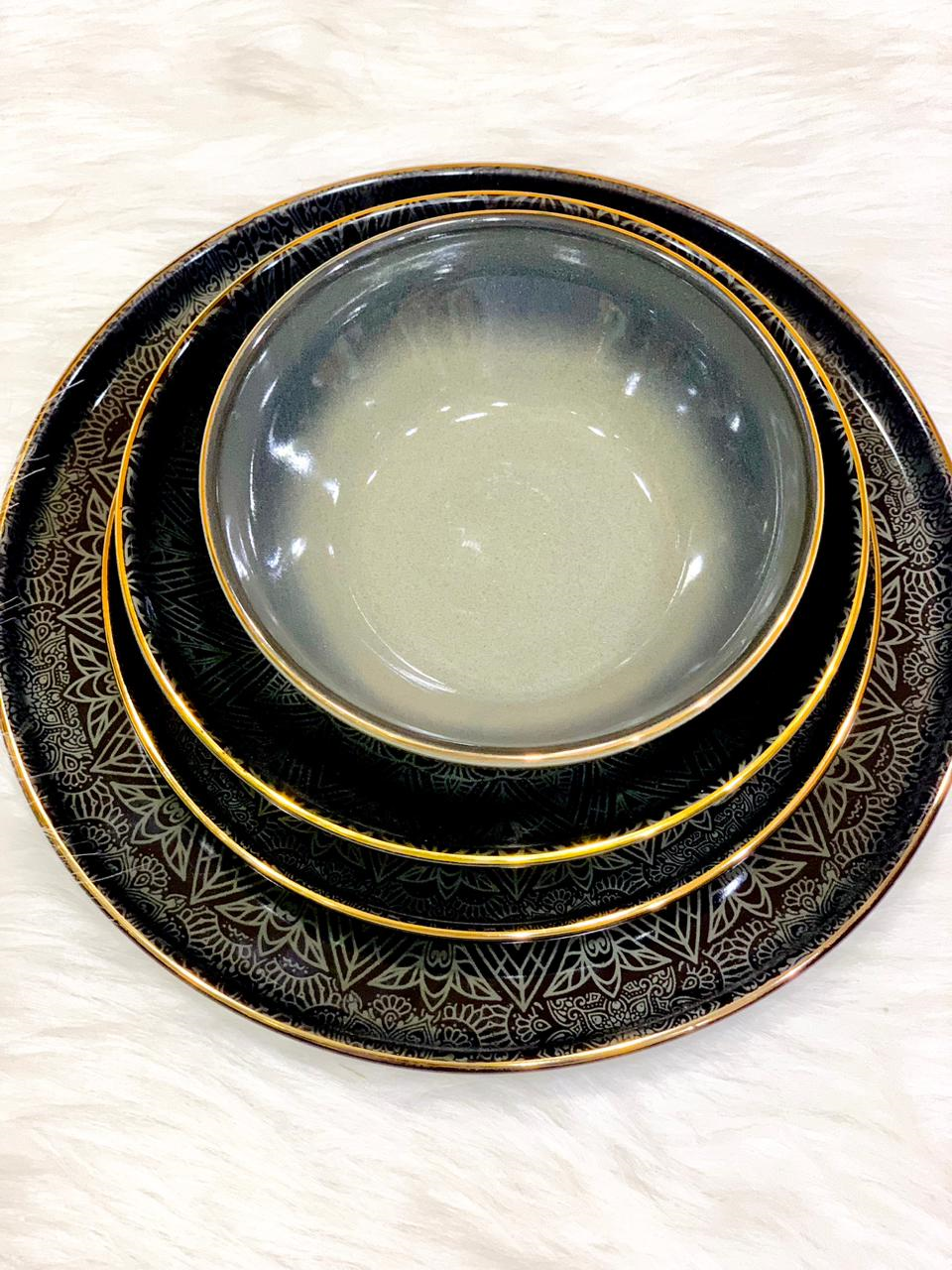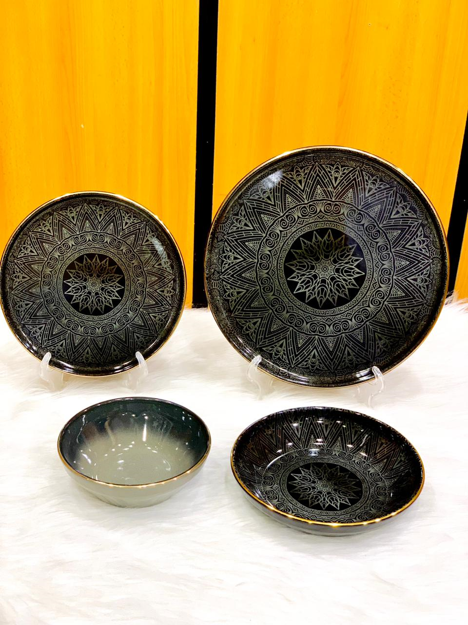 Porcelain Dinner Set 24 Pieces - Glory - Night Elegant Model with Luxurious Matte Black Pattern