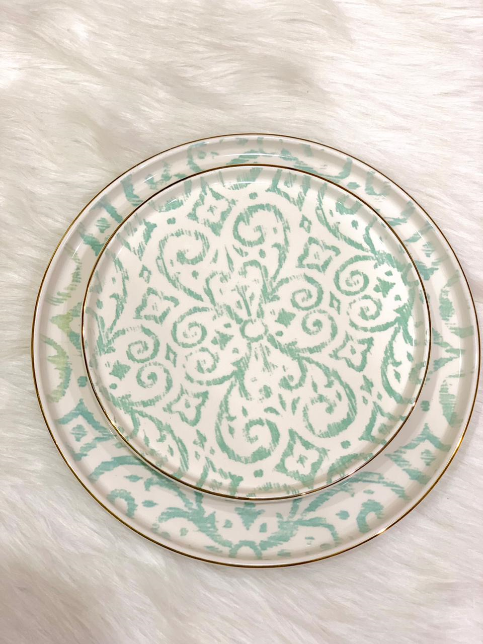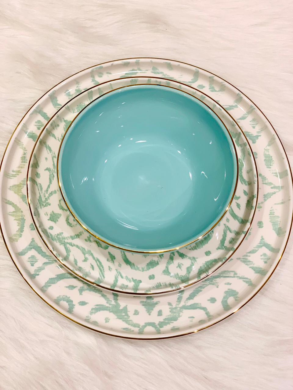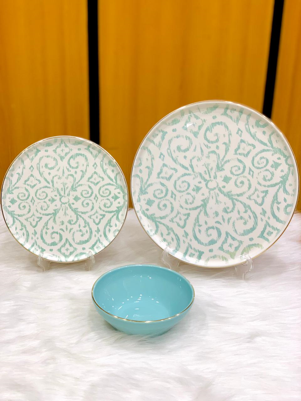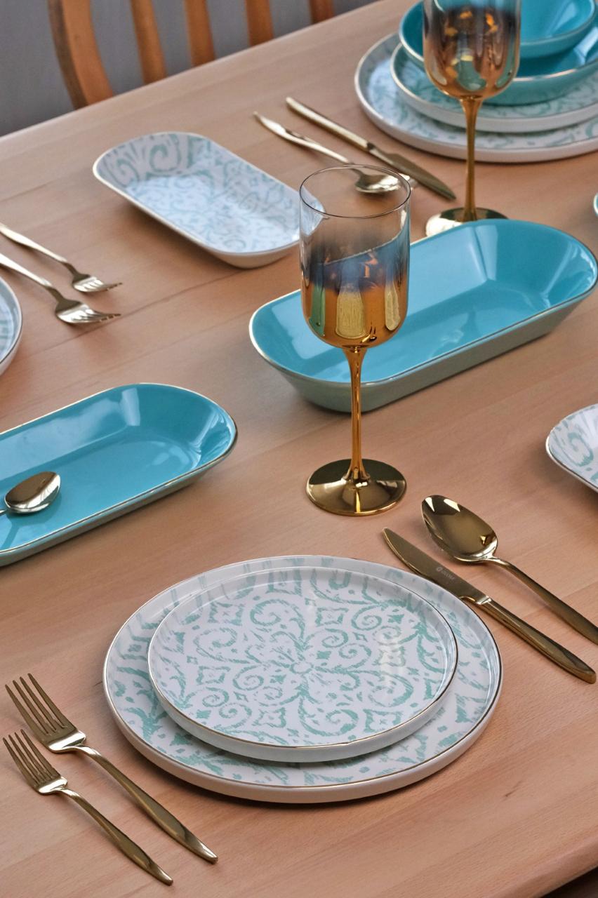 Porcelain Dinner Set 24 Pieces - Glory - Turquoise Classic Model with Decorative Pattern and Shiny Turquoise Side Plates