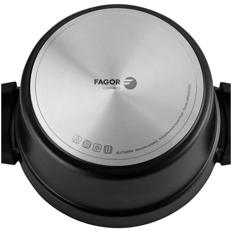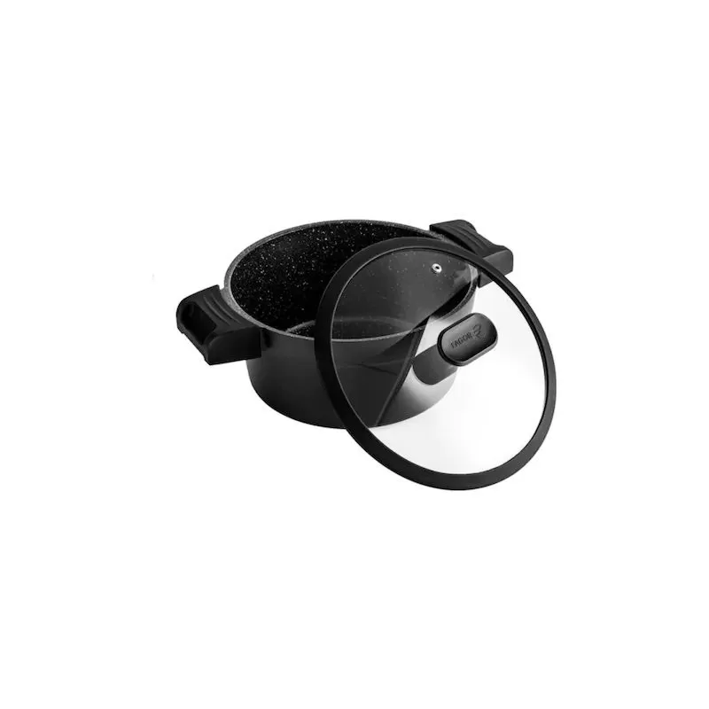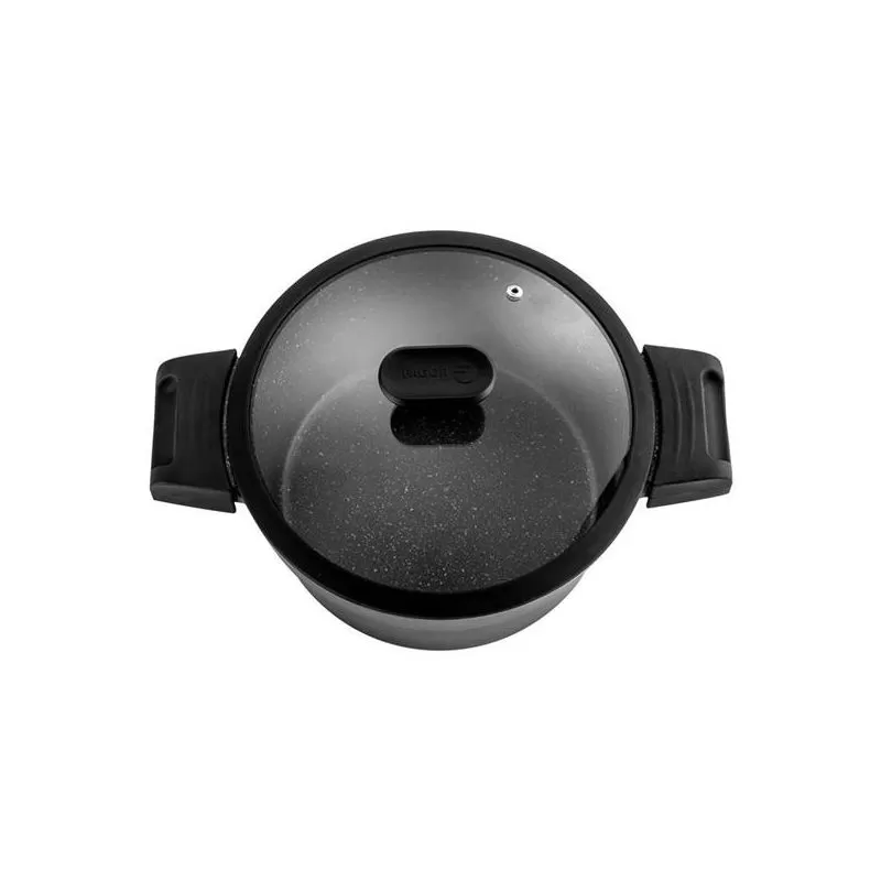 Pot with Lid 24 cm - No brand mentioned - Made of thick cast aluminum (5.3 mm) with double non-stick granite-Zelan Plus coating, silicone insulated handle, suitable for all stoves, Spanish made