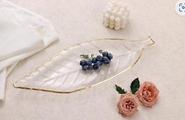 Danny Home glass serving tray Three Leaves with gilded frame RW12-01