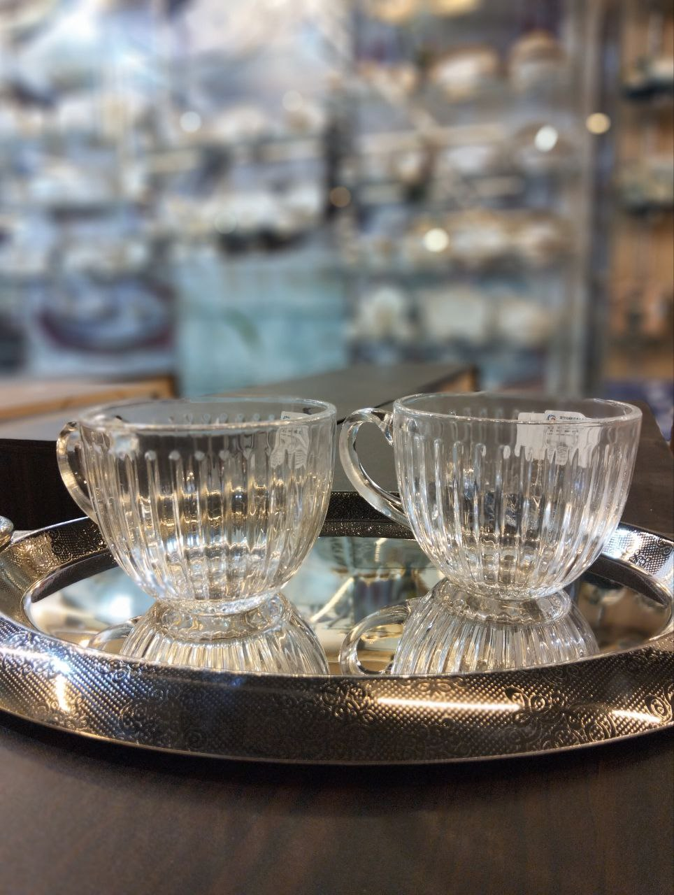 Living Home 2-piece glass mug set with elegant grooved design and transparent handle LXZB78-2
