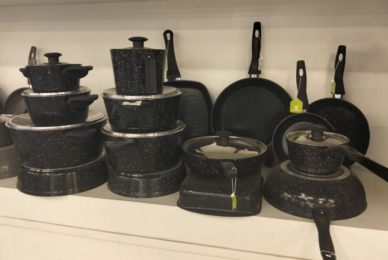 Granite set 23 pieces Top Chef round black (pots 16-20-24-26 + frying pans 20-24-30 + 30 cm casserole)