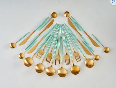 Set of 4 bouillon spoons gold with green handle code C12-11 GREEN