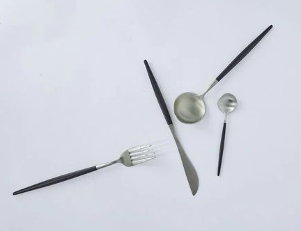 Set of 4 bouillon spoons silver with black handle code C12-10 BLACK