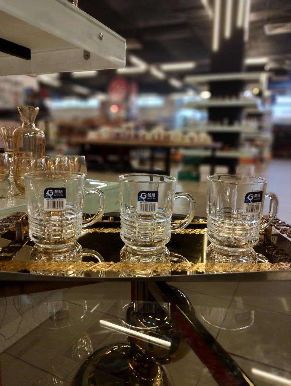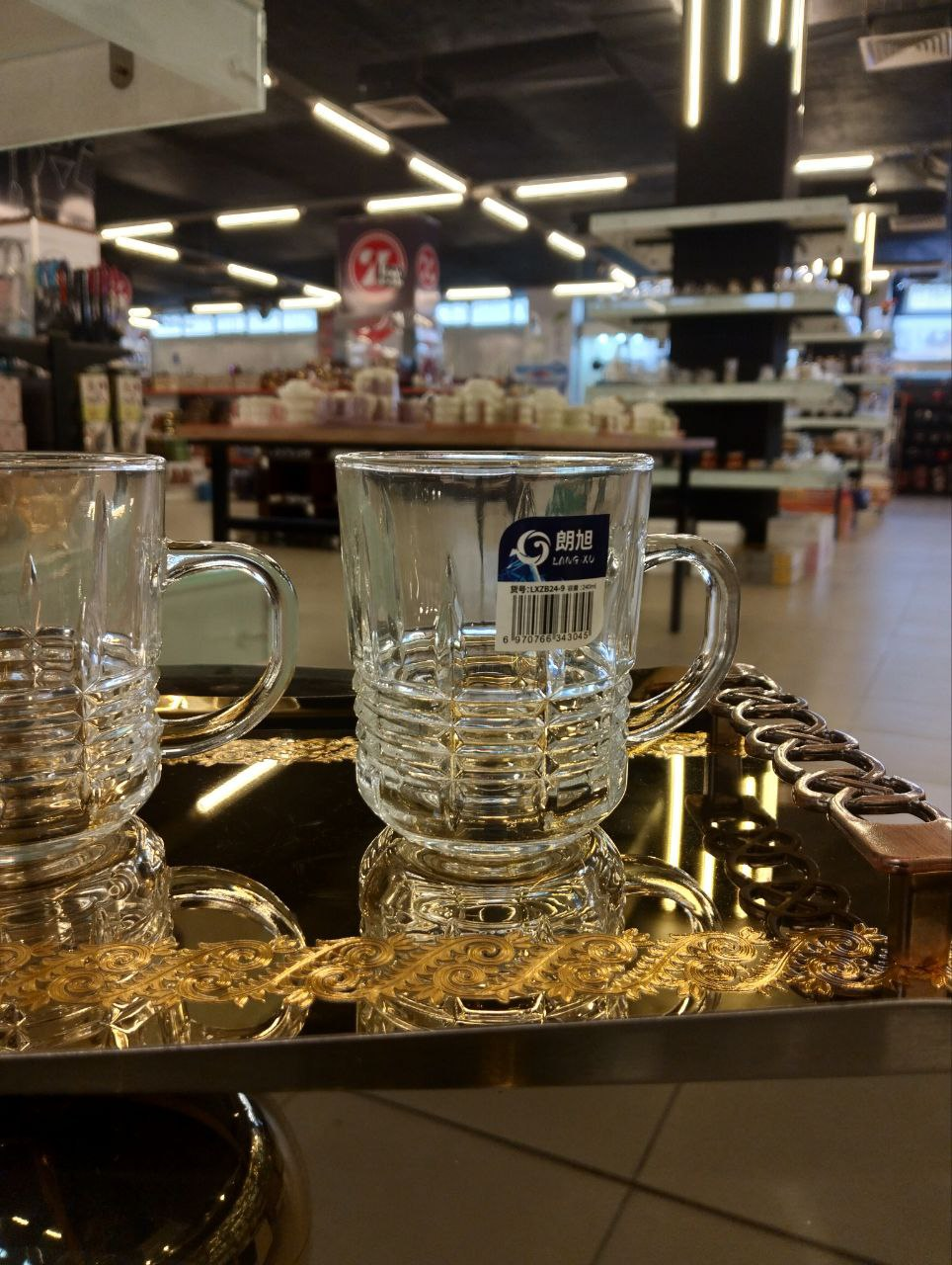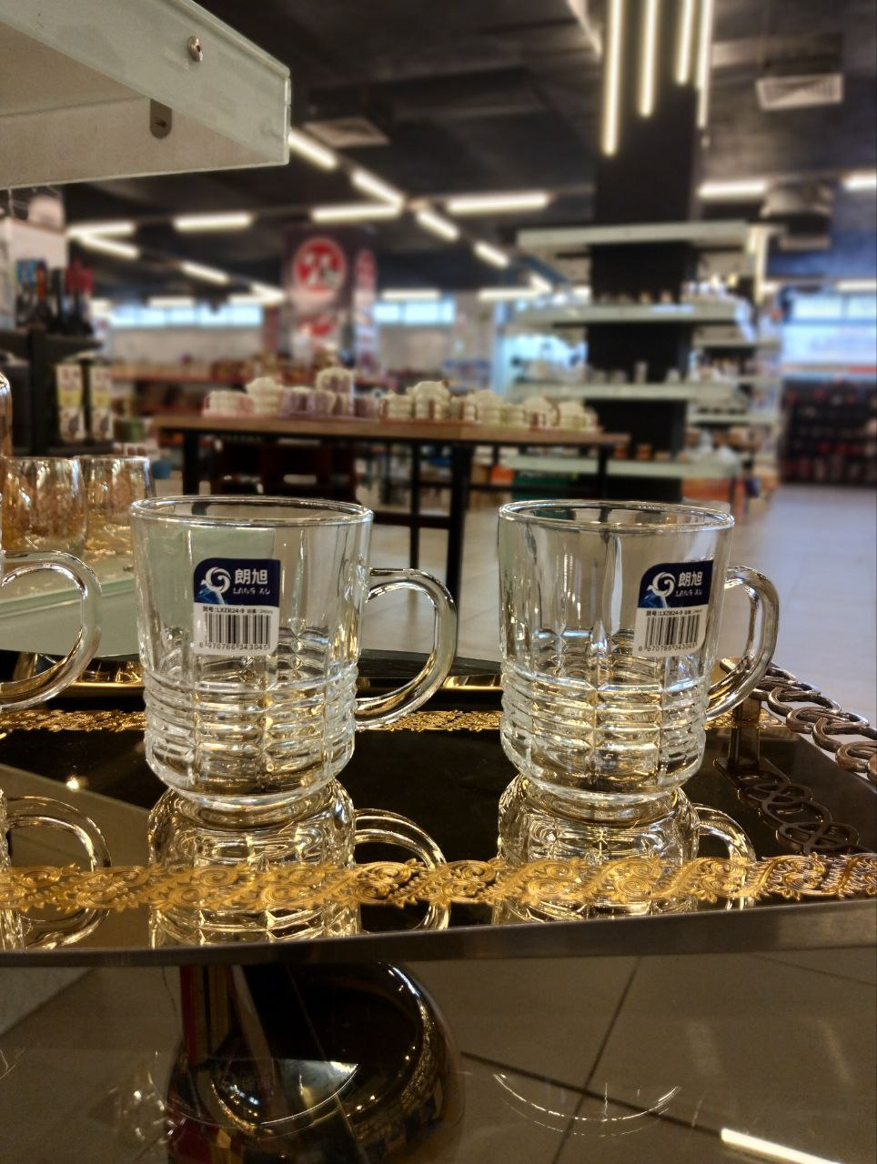 Living Home 6-piece glass mug set with engraved grid design that adds elegance and luxury LXZB24-9