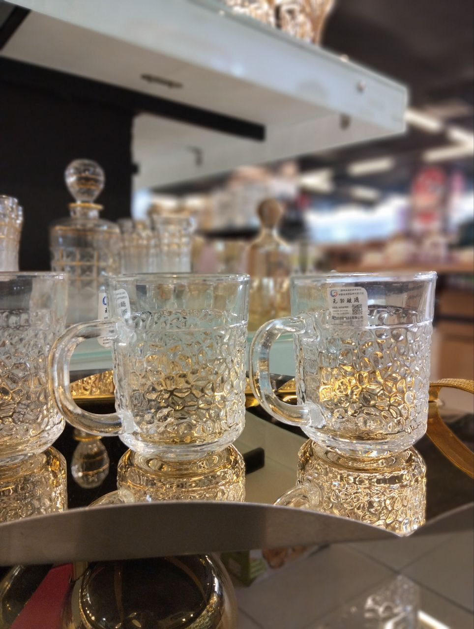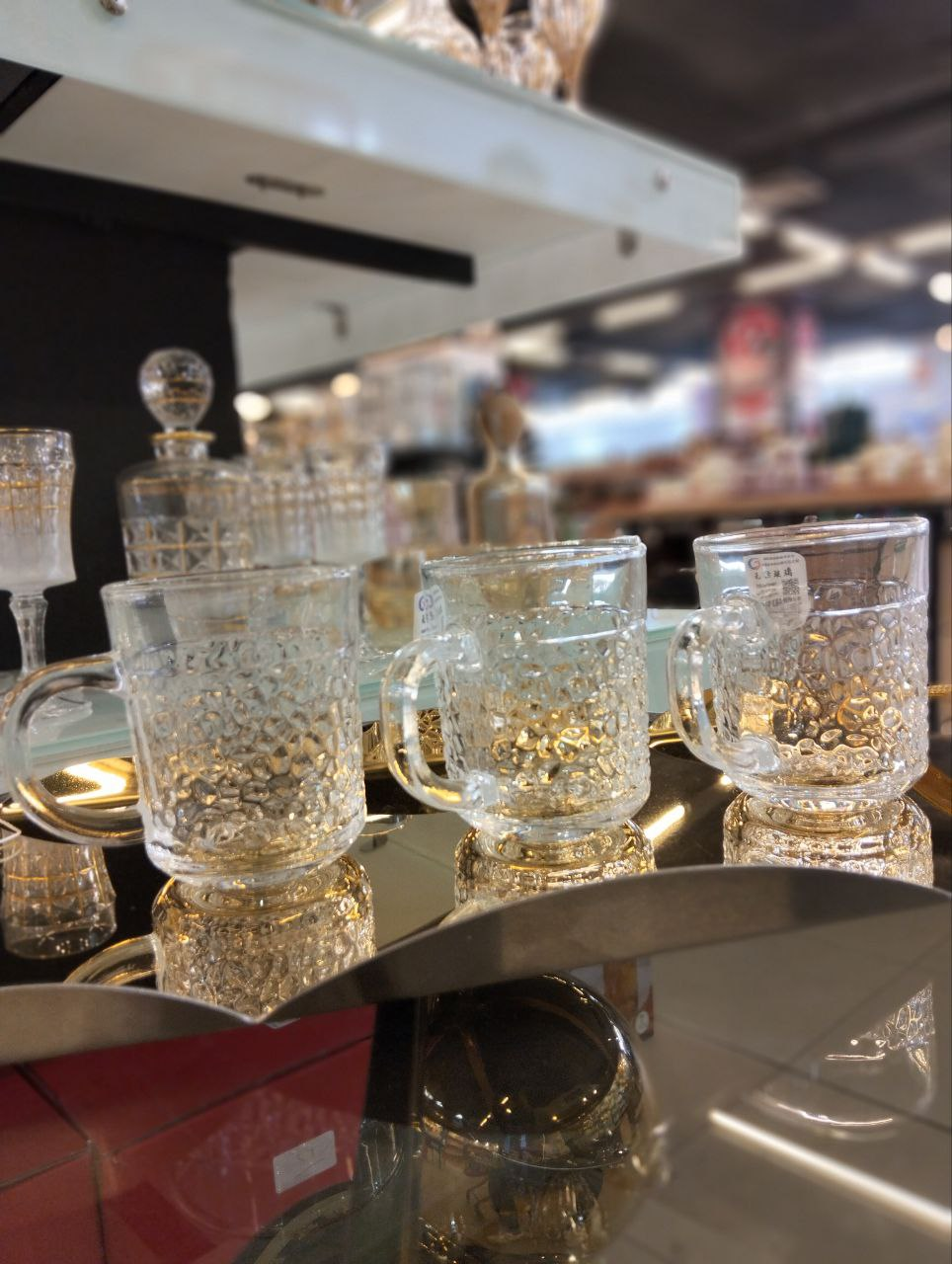 Living Home 6-piece glass mug set with handle, honeycomb pattern and attractive light reflection LXZB24-3