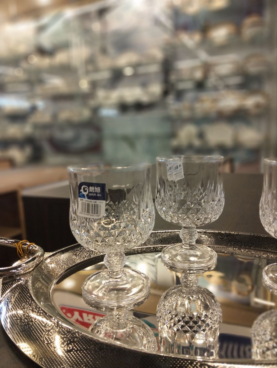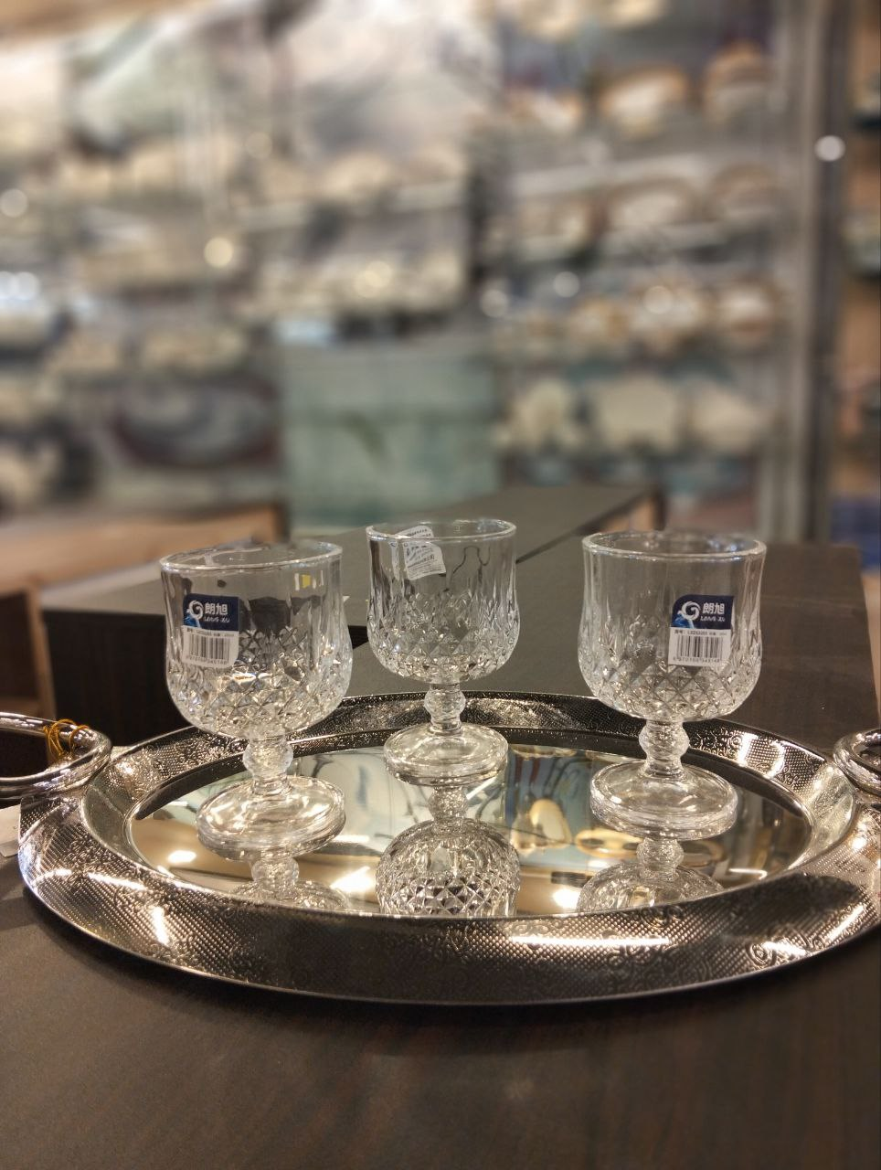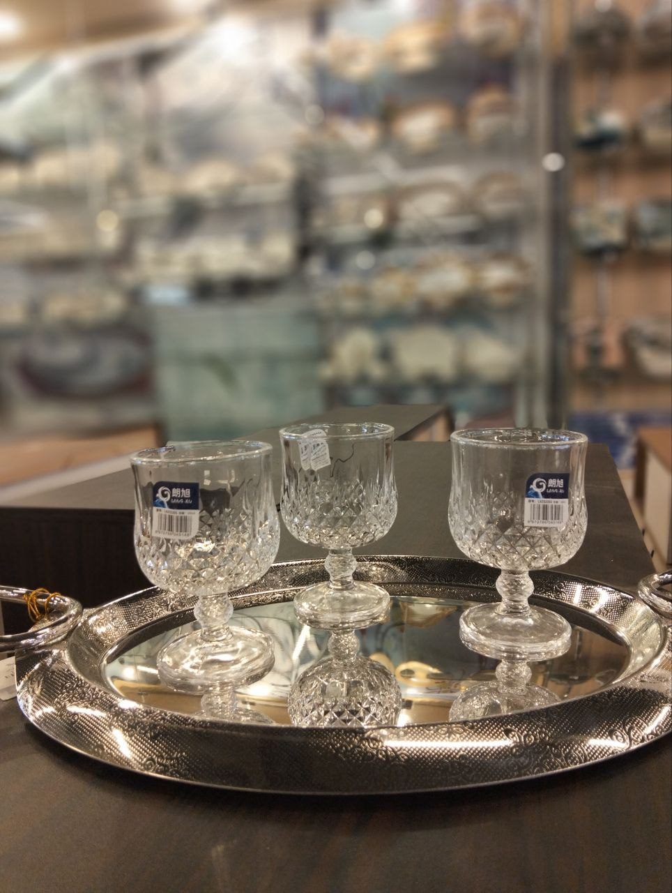 Living Home glass goblet, set of 6 pieces, transparent with an elegant diamond design and elevated base