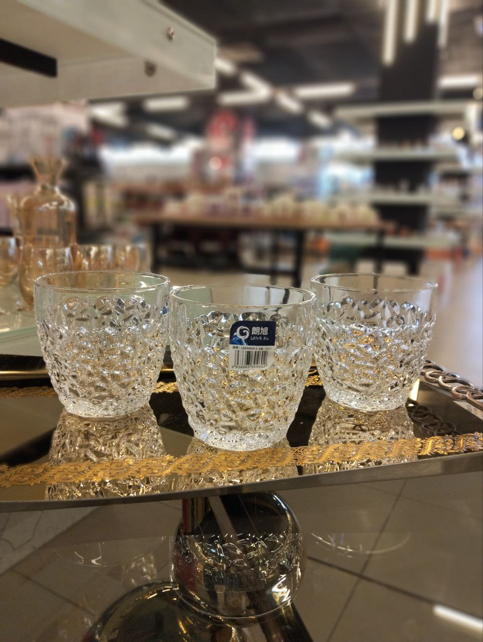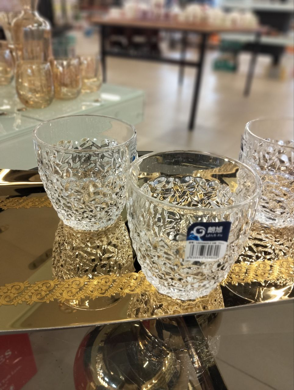 Living Home glass cup, set of 6 pieces, transparent with a 3D curved design that provides a unique texture and high elegance