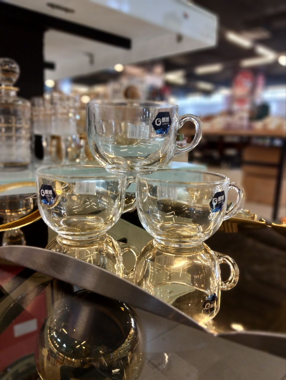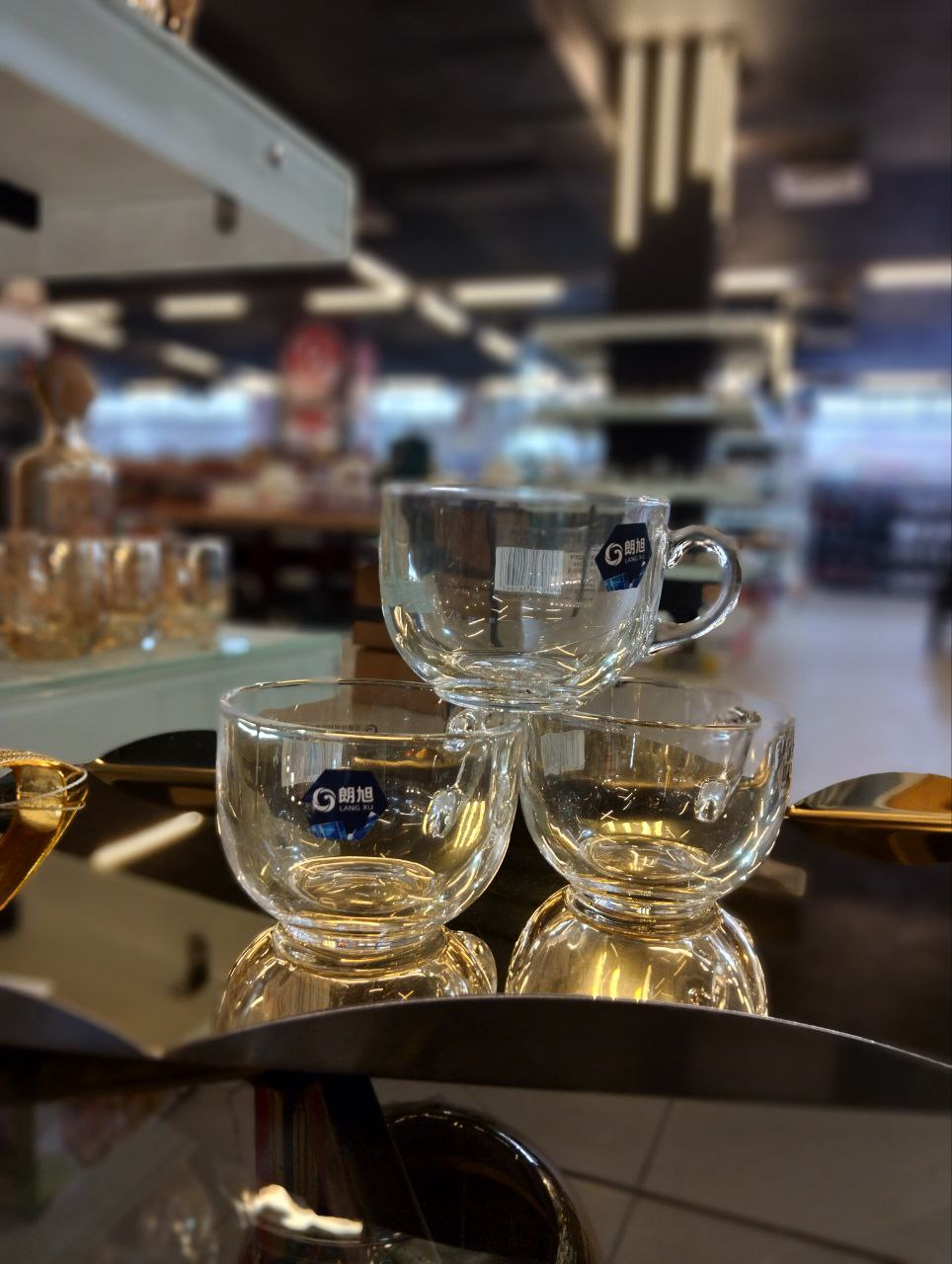 Living Home 6-piece transparent glass mug set with simple and elegant design and circular handle