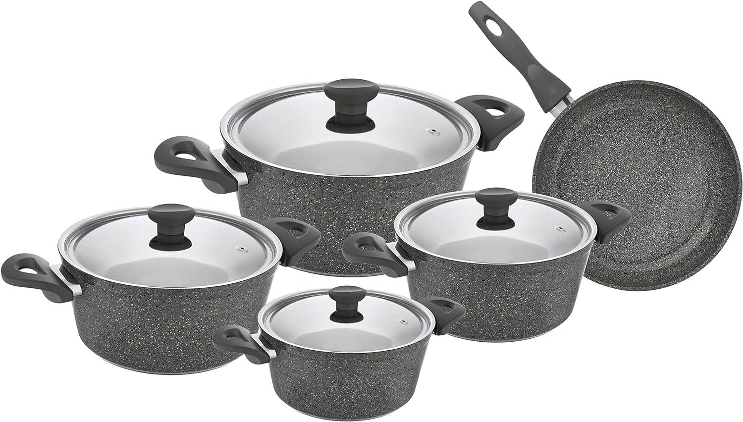 Granite cookware set Top Chef 9 pieces round formation (18+20+24+28) + 26 cm gray frying pan