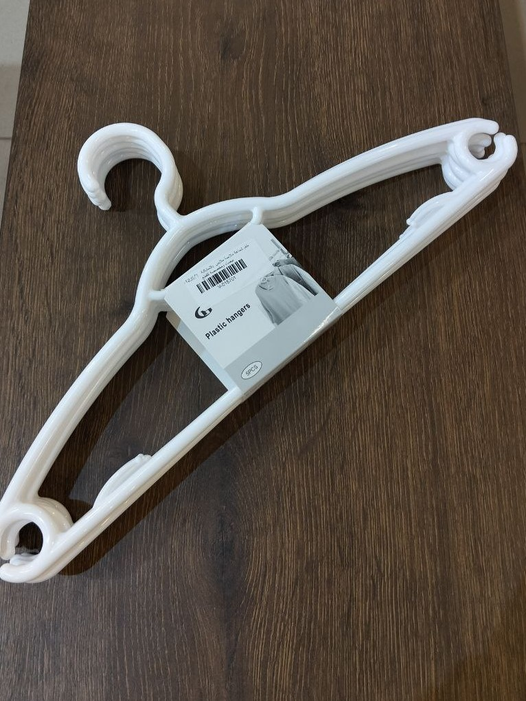 Set of white plastic clothes hangers designed for heavy garments