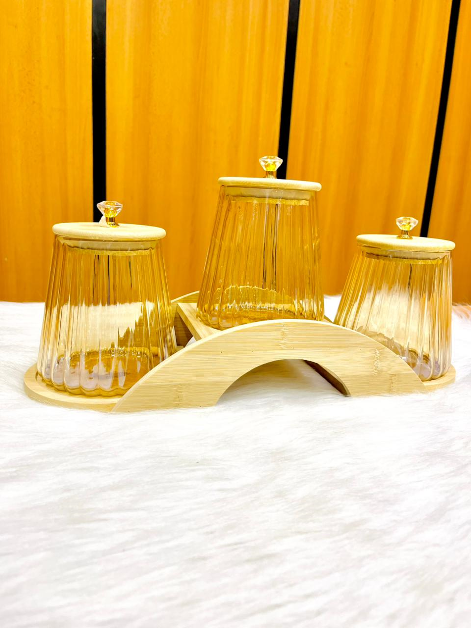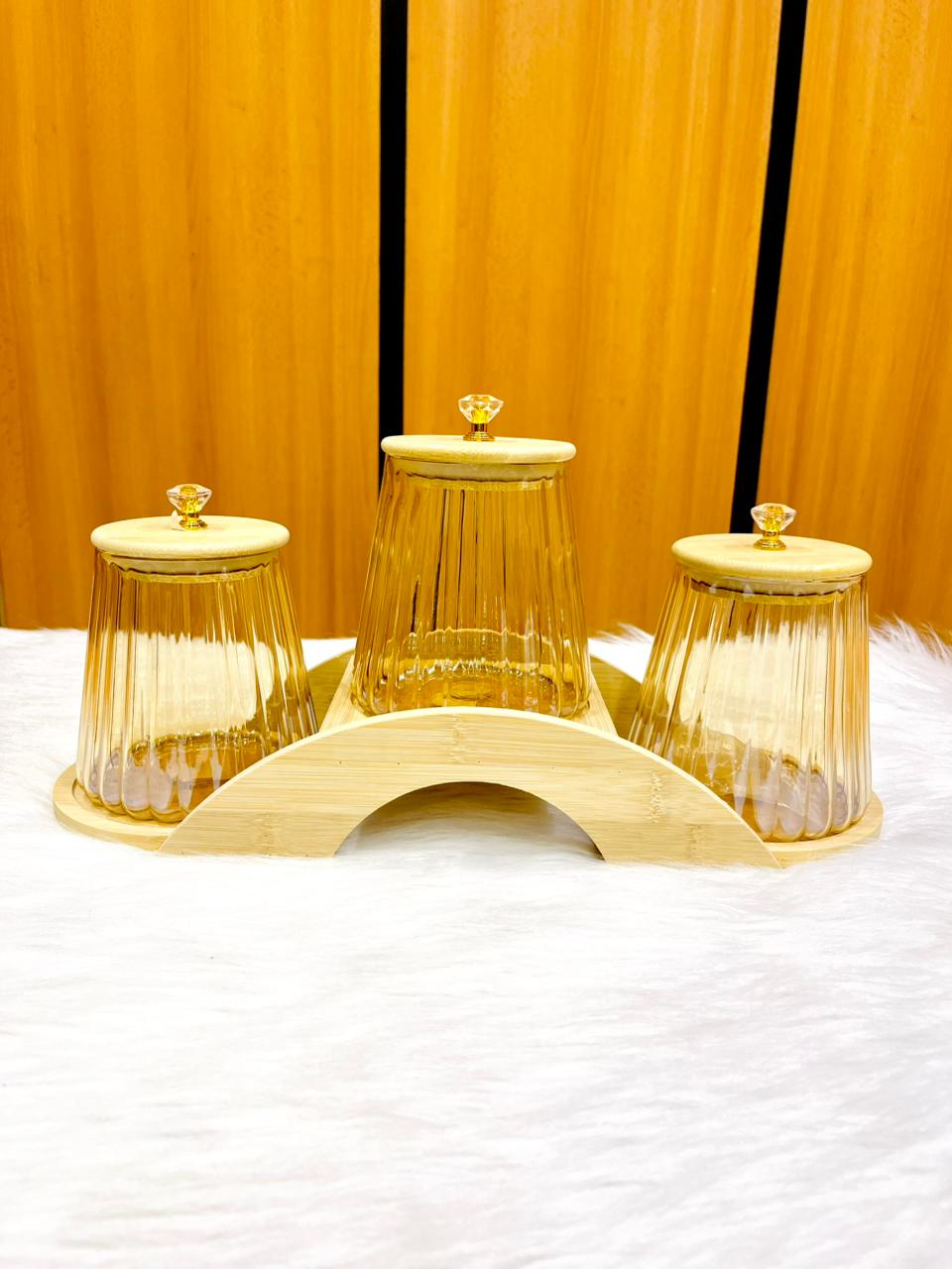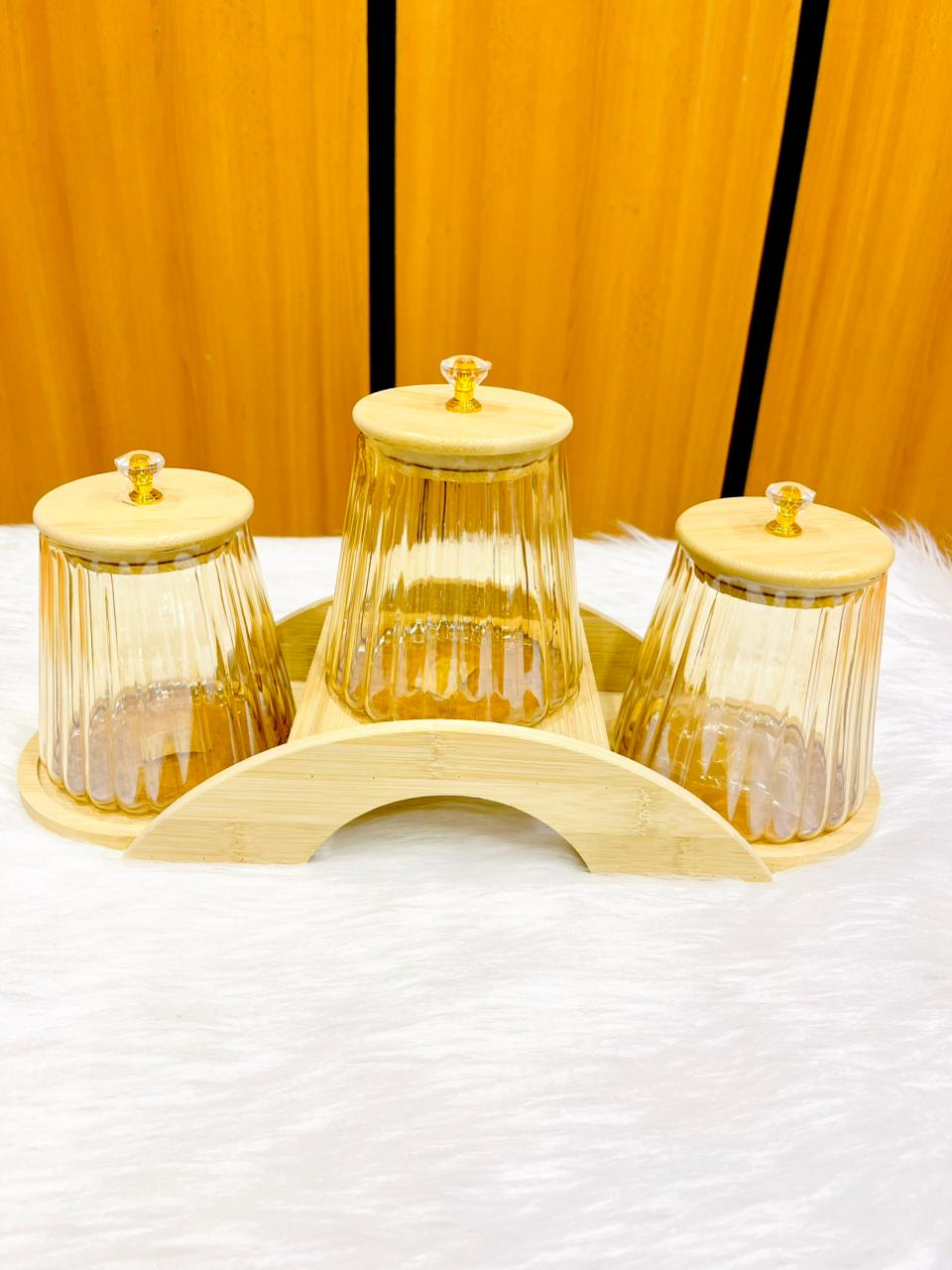 Stone Spice Set 3 pieces with Glass on Wooden Stand EE-34 V2