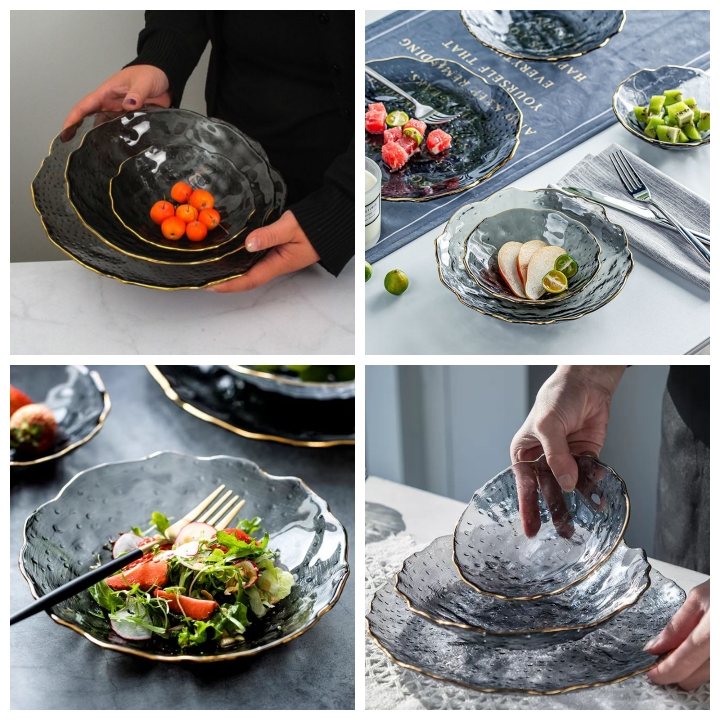 Glass Serving Set 3 pcs Gold Letter Green (Abdo-103-104-105) 710900017