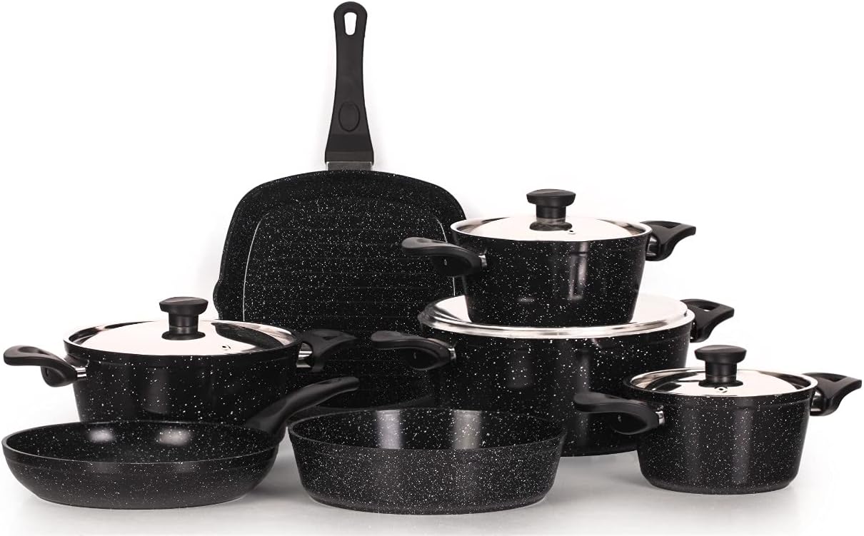 Granite cookware set Top Chef 11 pieces round formation (18+20+24+28) + 22 cm frying pan + 26 cm frying pan + 26 cm black tray