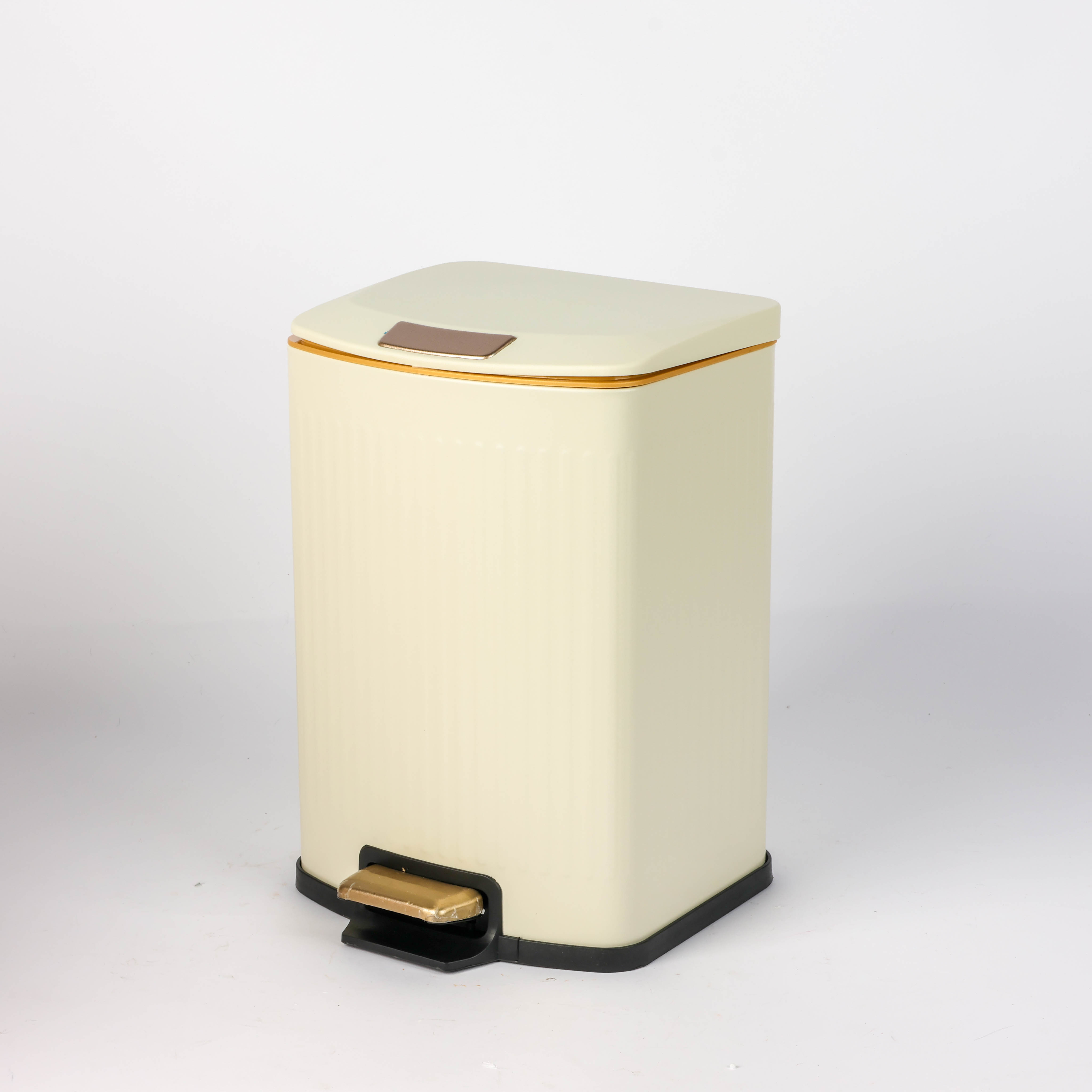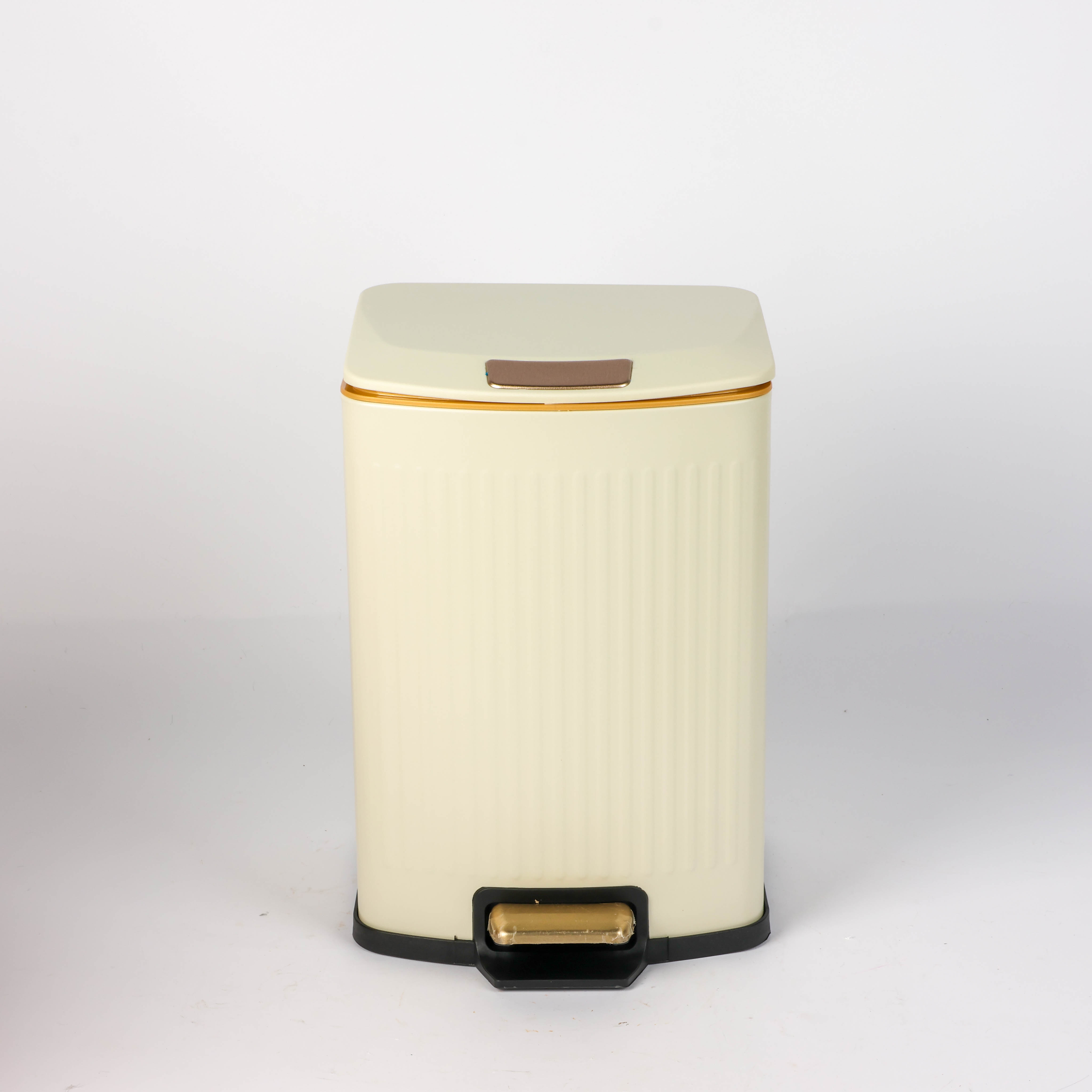 Trash bin 12 liters - ivory white with striped design - hydraulic open