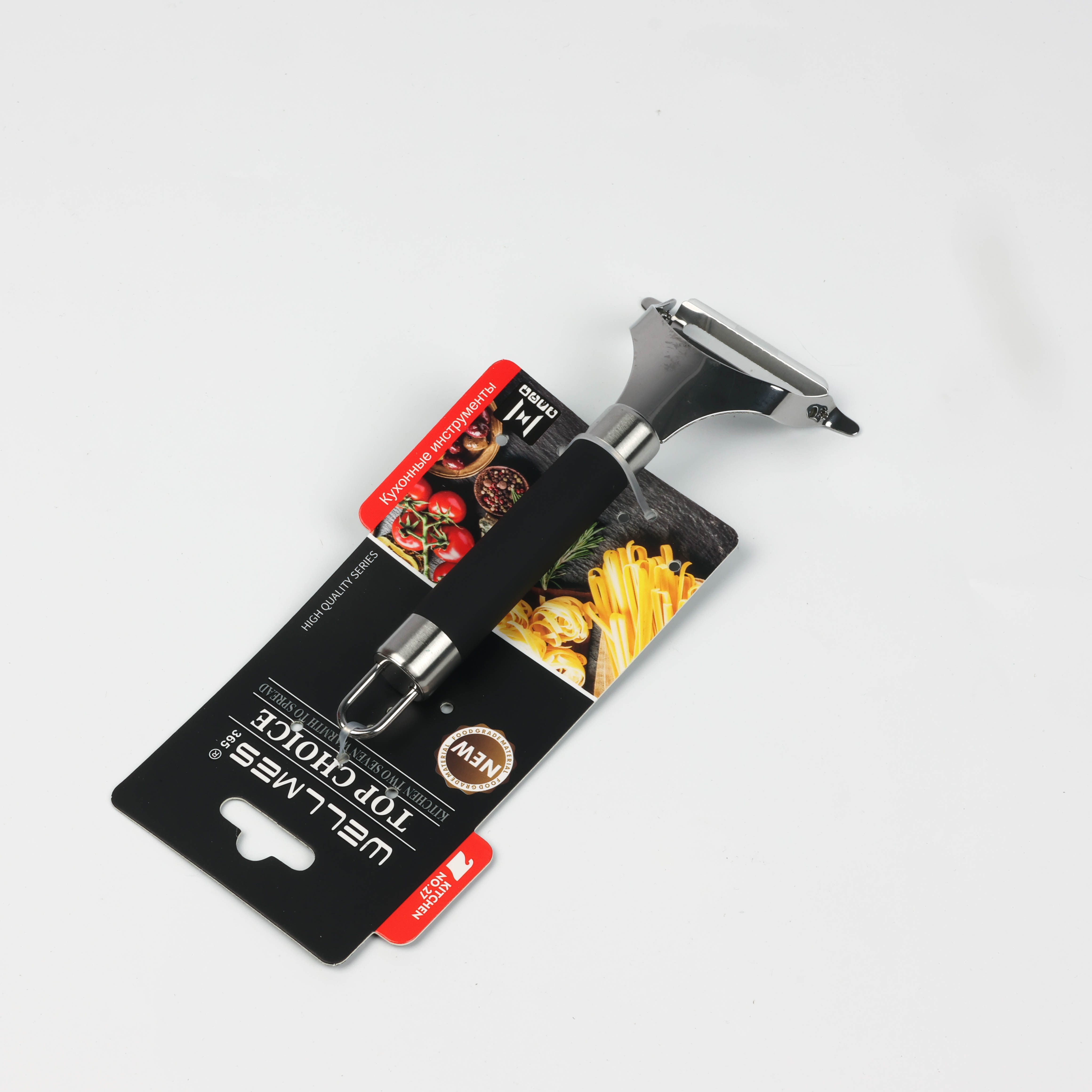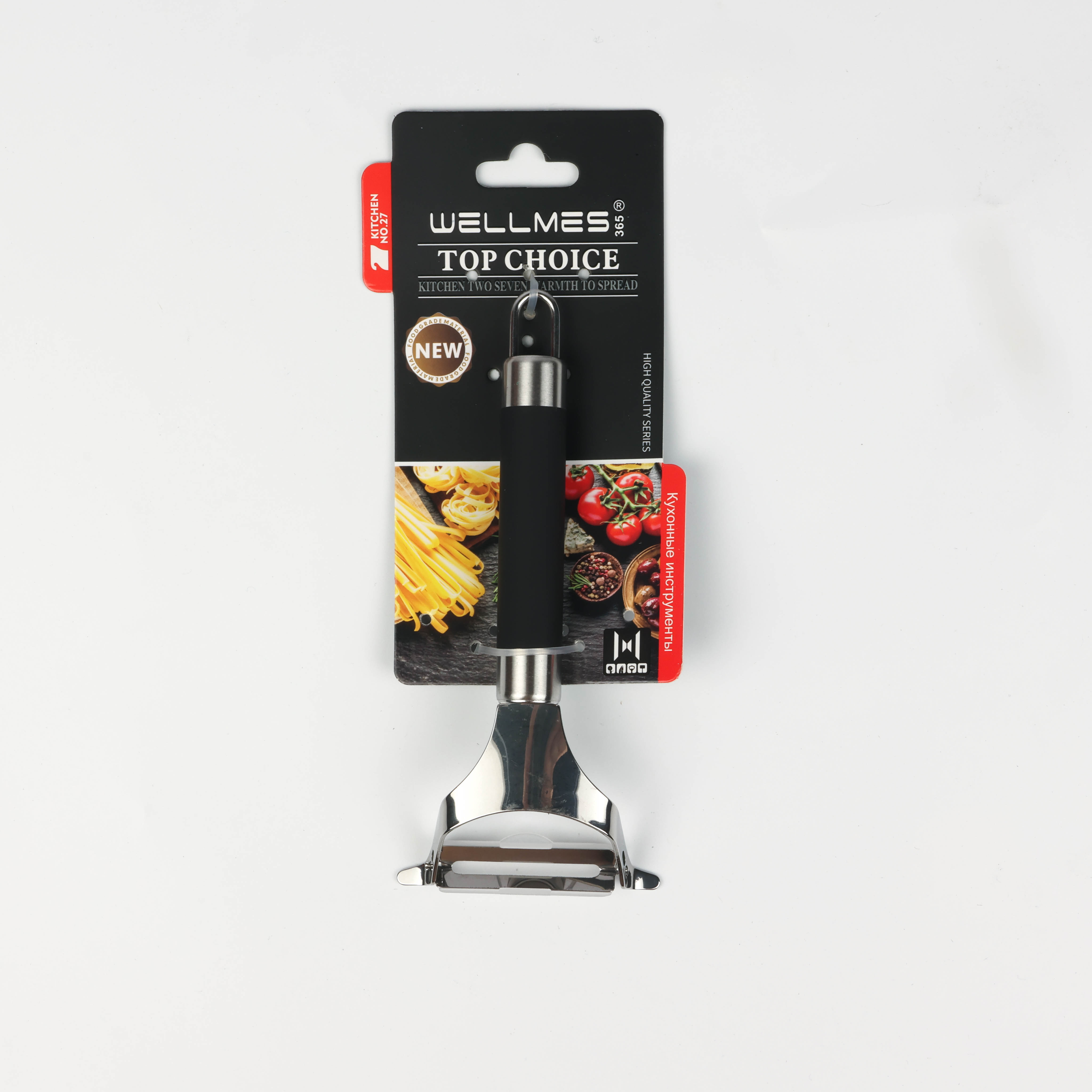 Vegetable and fruit peeler with silicone-coated handle and hook Wellmes