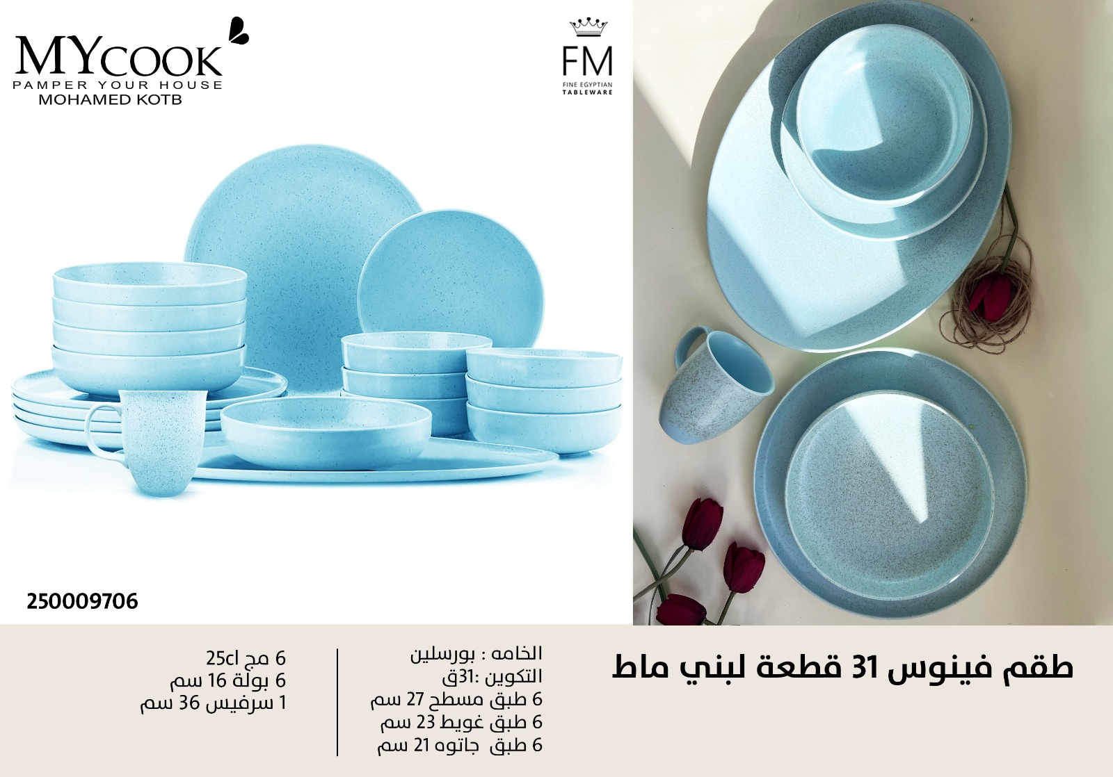 Venus porcelain dinnerware set, 31 pieces, matte light blue