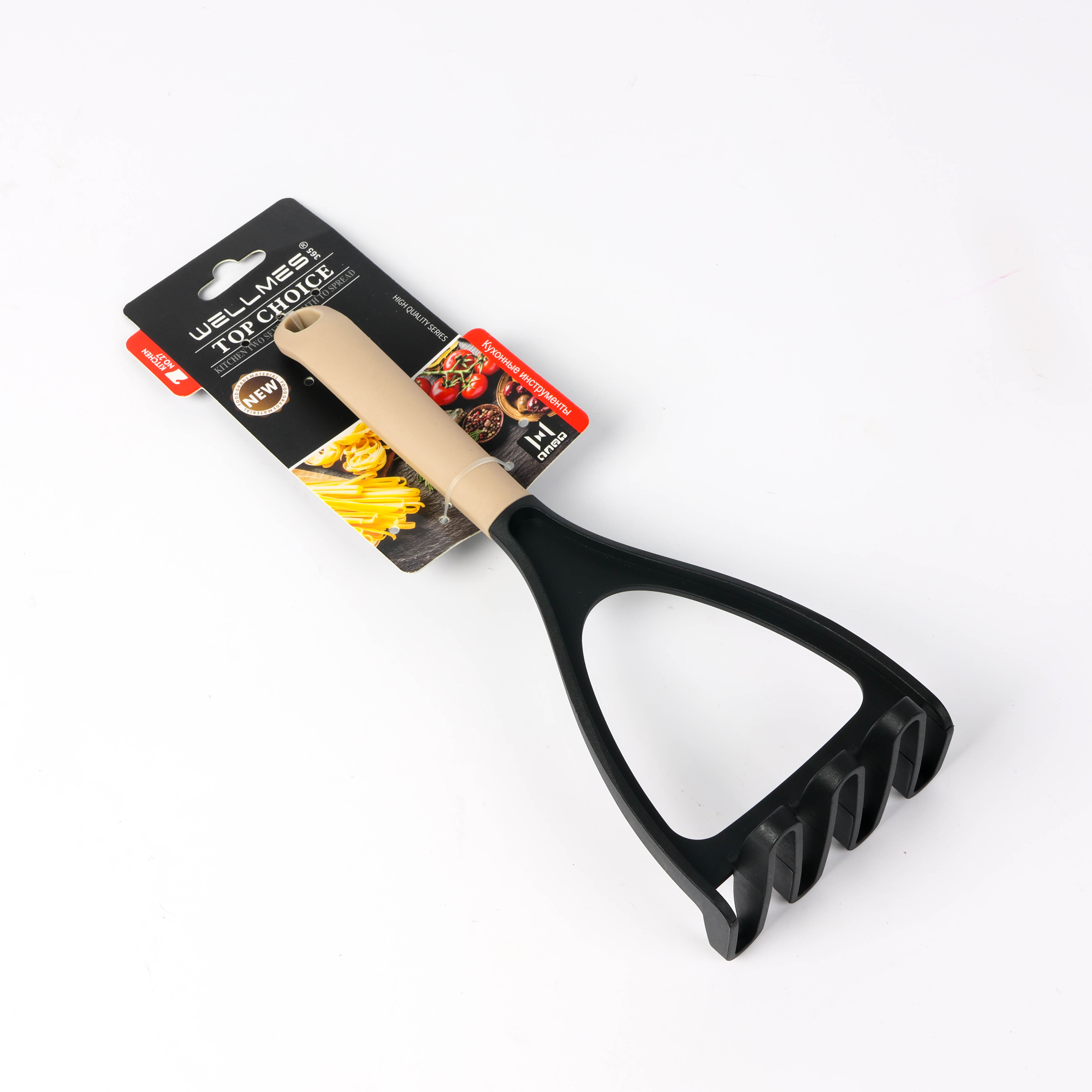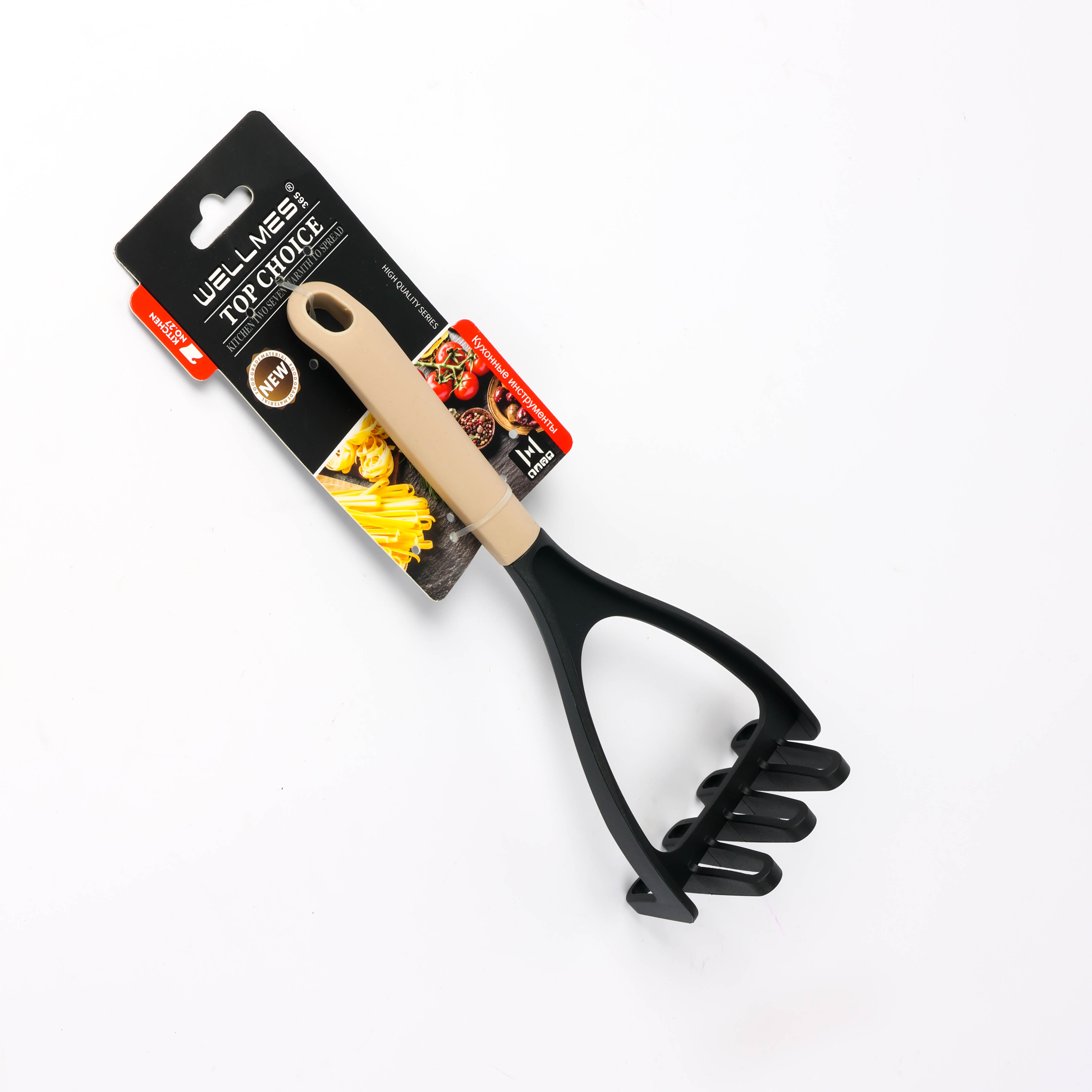Wellmes Silicone Potato Masher with Wooden Handle – For Mashing Potatoes and Vegetables