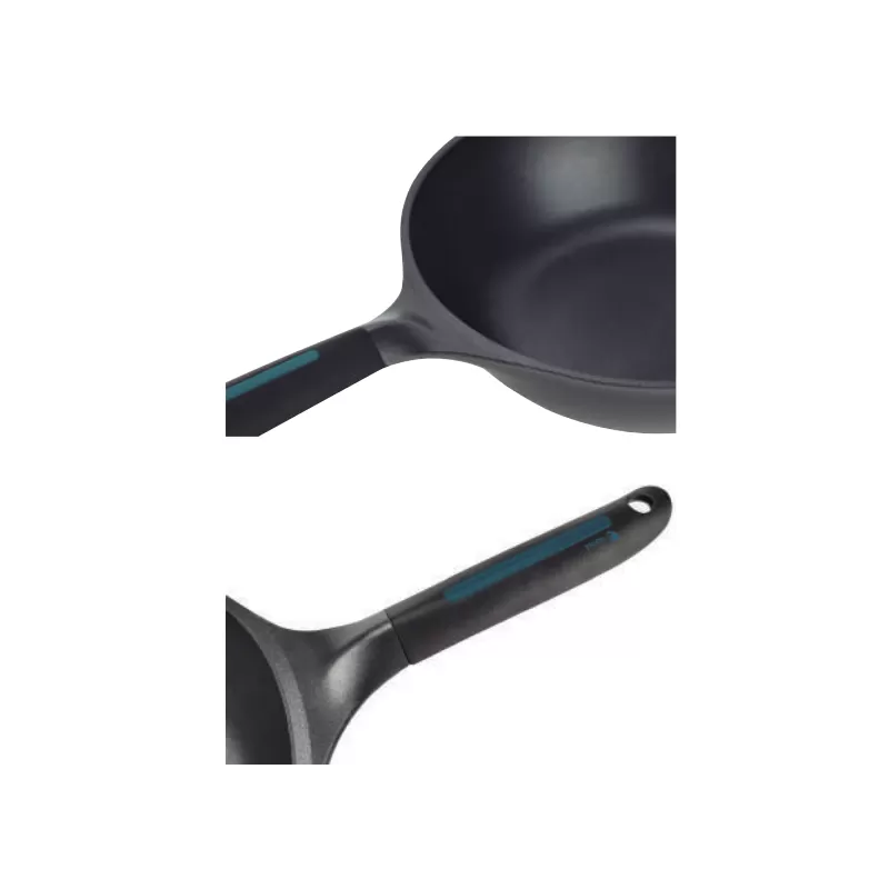 Wok 28 cm - Future - Cast aluminum body, double non-stick Exilan Plus base, Impacteel heat-distributing base, Bakelite fire-resistant handles, suitable for all stove types and full induction, Spanish