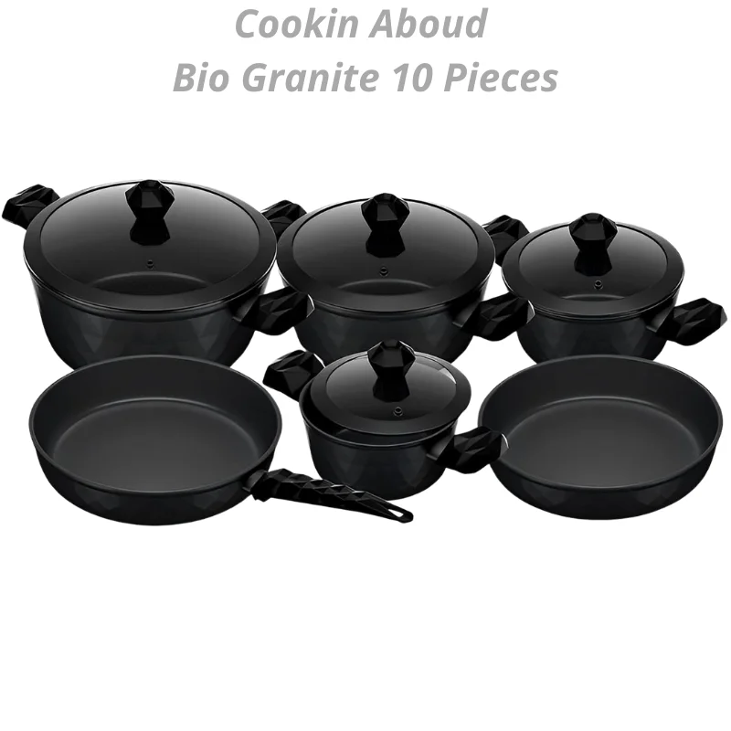 Aboud Diamond Granite 10-Piece Cooking Set (Pots 18/20/24/28 + Baking Tray 26 + Frying Pan 26) Black