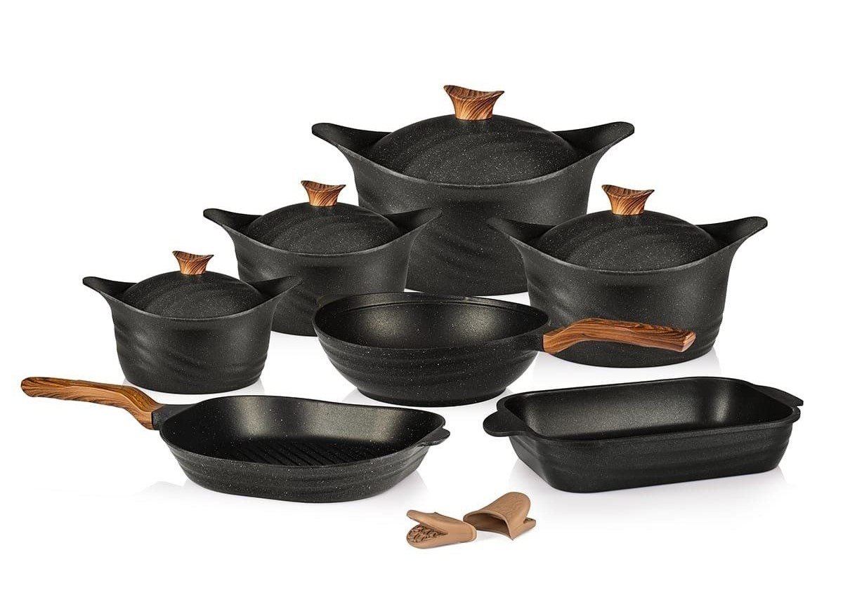 Granite pot 11 pieces, Korean model, 32 cm pot + Tajin + Grill + Wok KAZAN / Copper