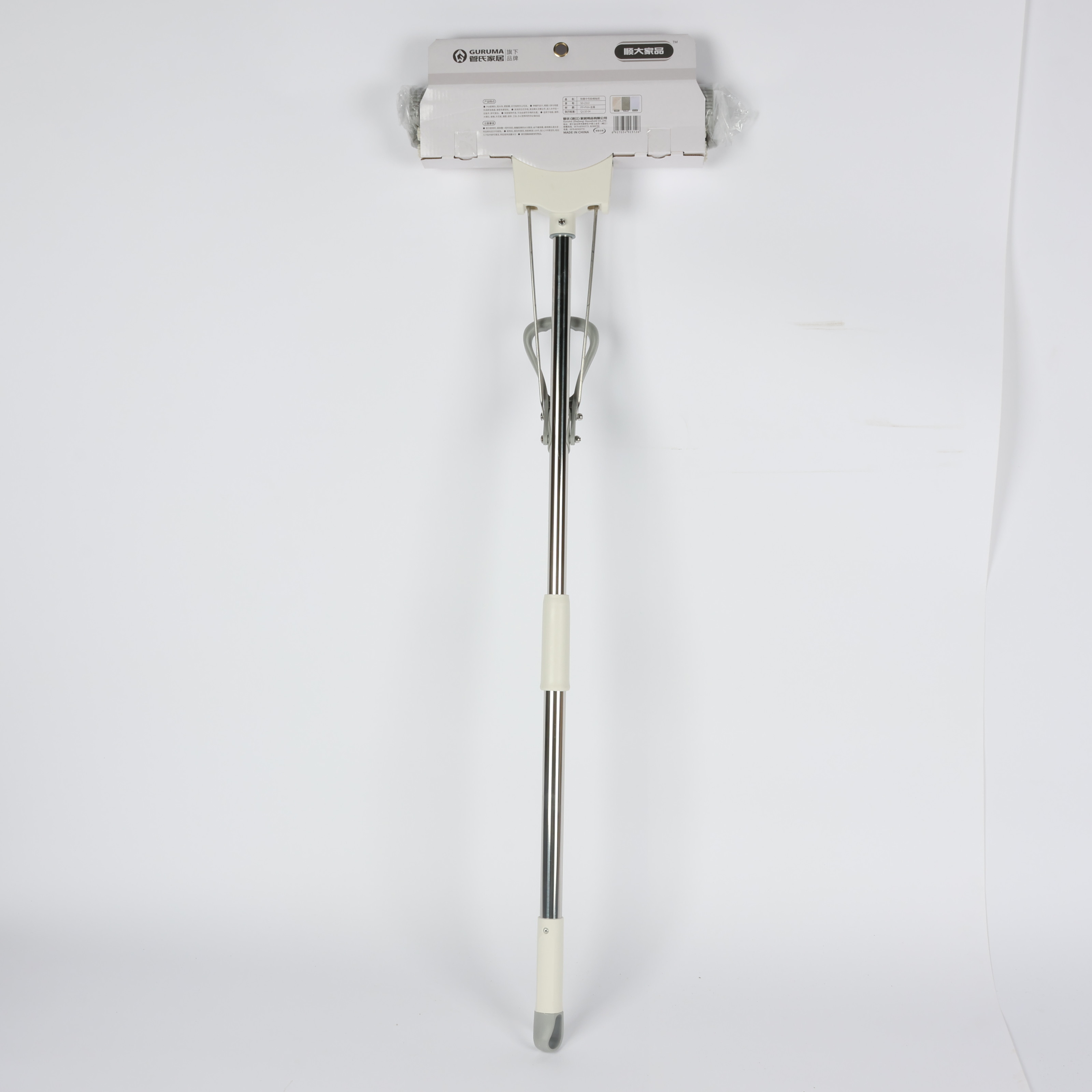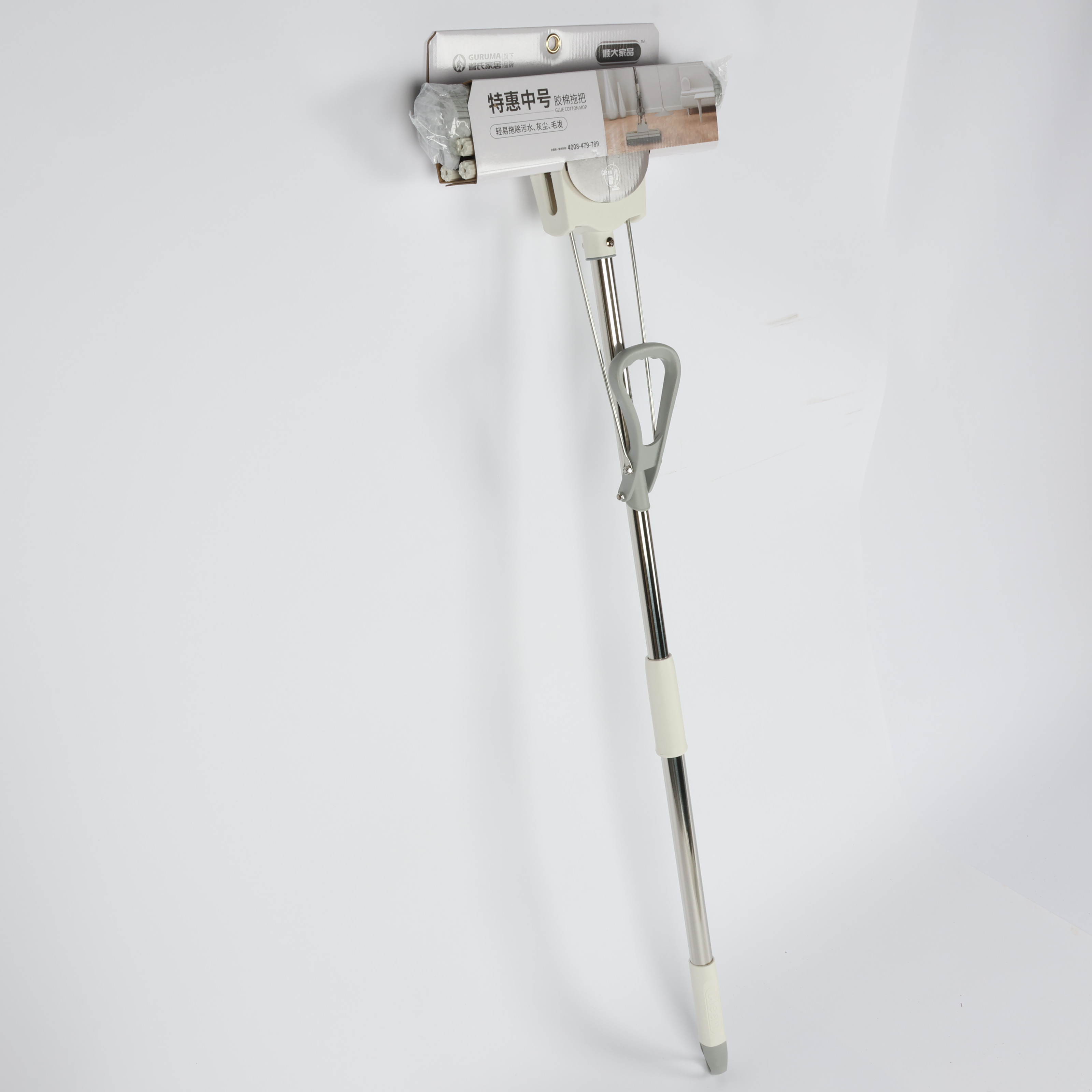 Mop with soft cloth head and sturdy metal handle, white/grey