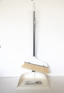 BROOM and dustpan set with long metal handle and soft bristles Beige