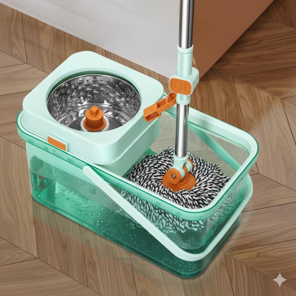 Acrylic Square Bucket with Rotating Stainless Steel Wringer
