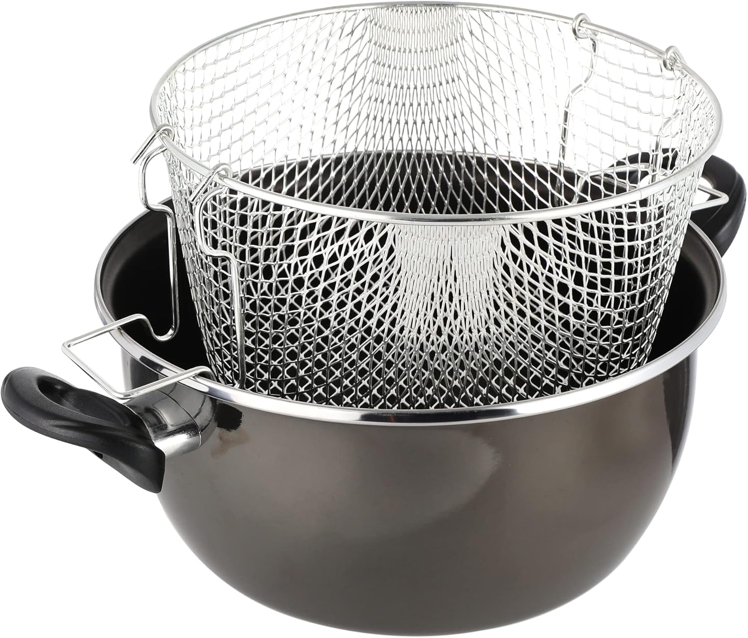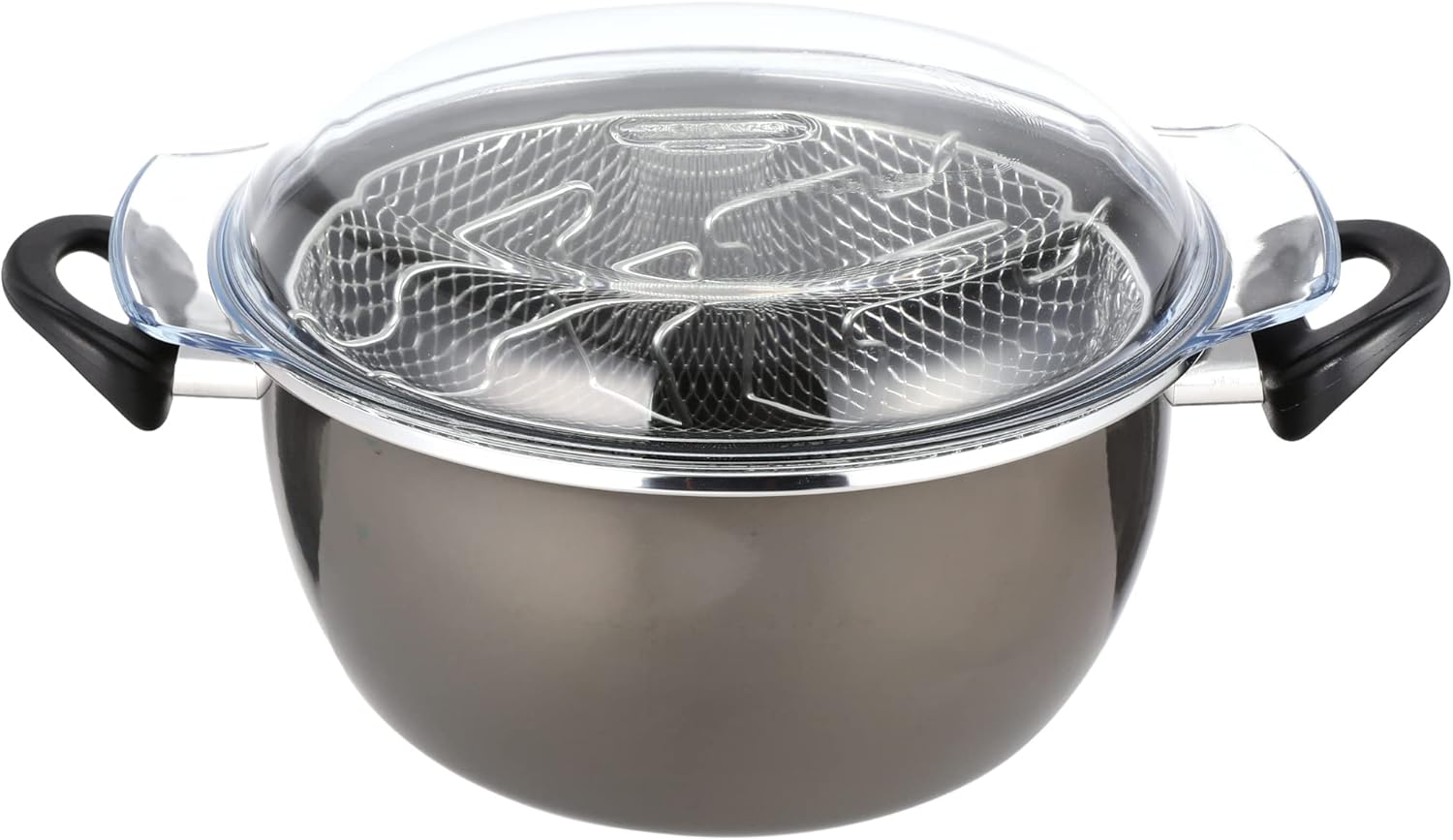 Fish frying pot with Pyrex lid 24 cm and grey crystal mesh