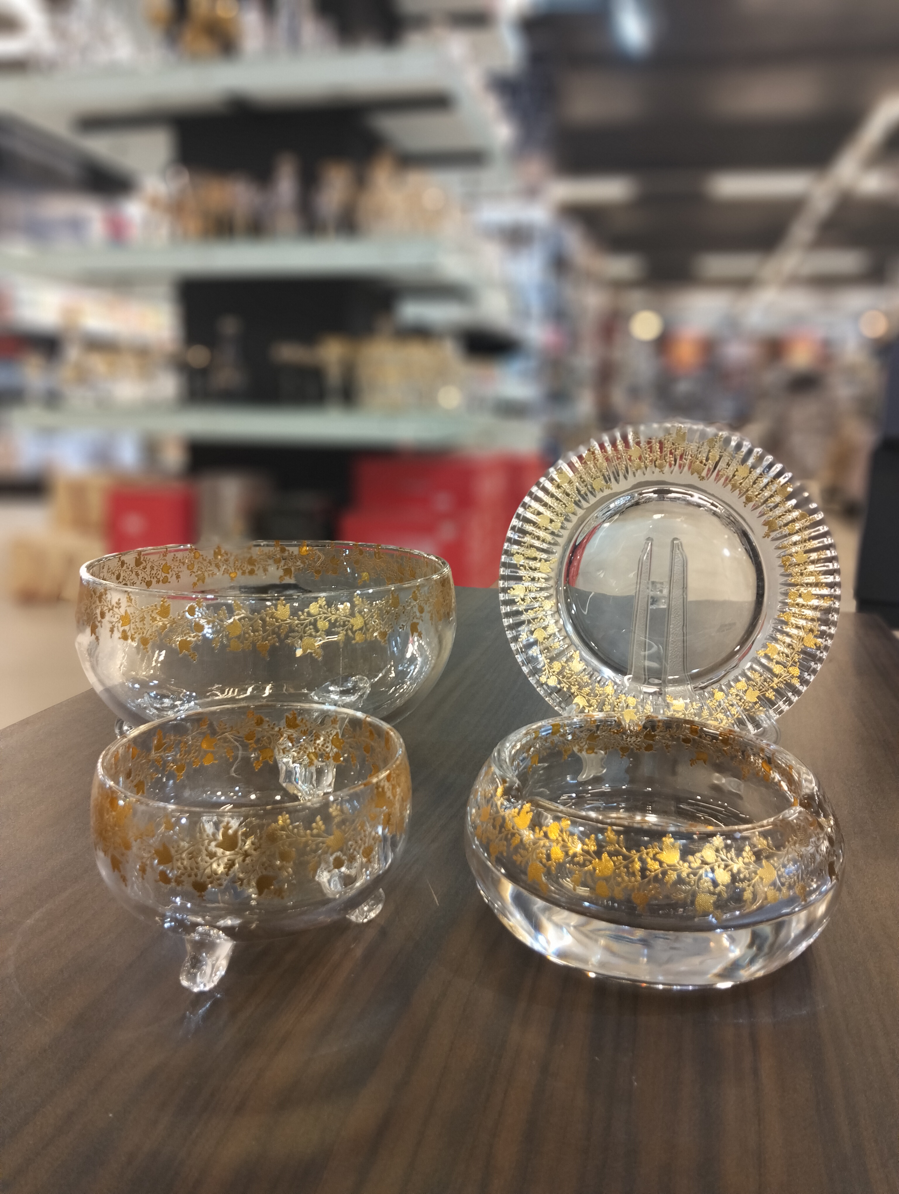 Glass Serving Set 3 pcs Gold Letter Green (Abdo-103-104-105) 710900017