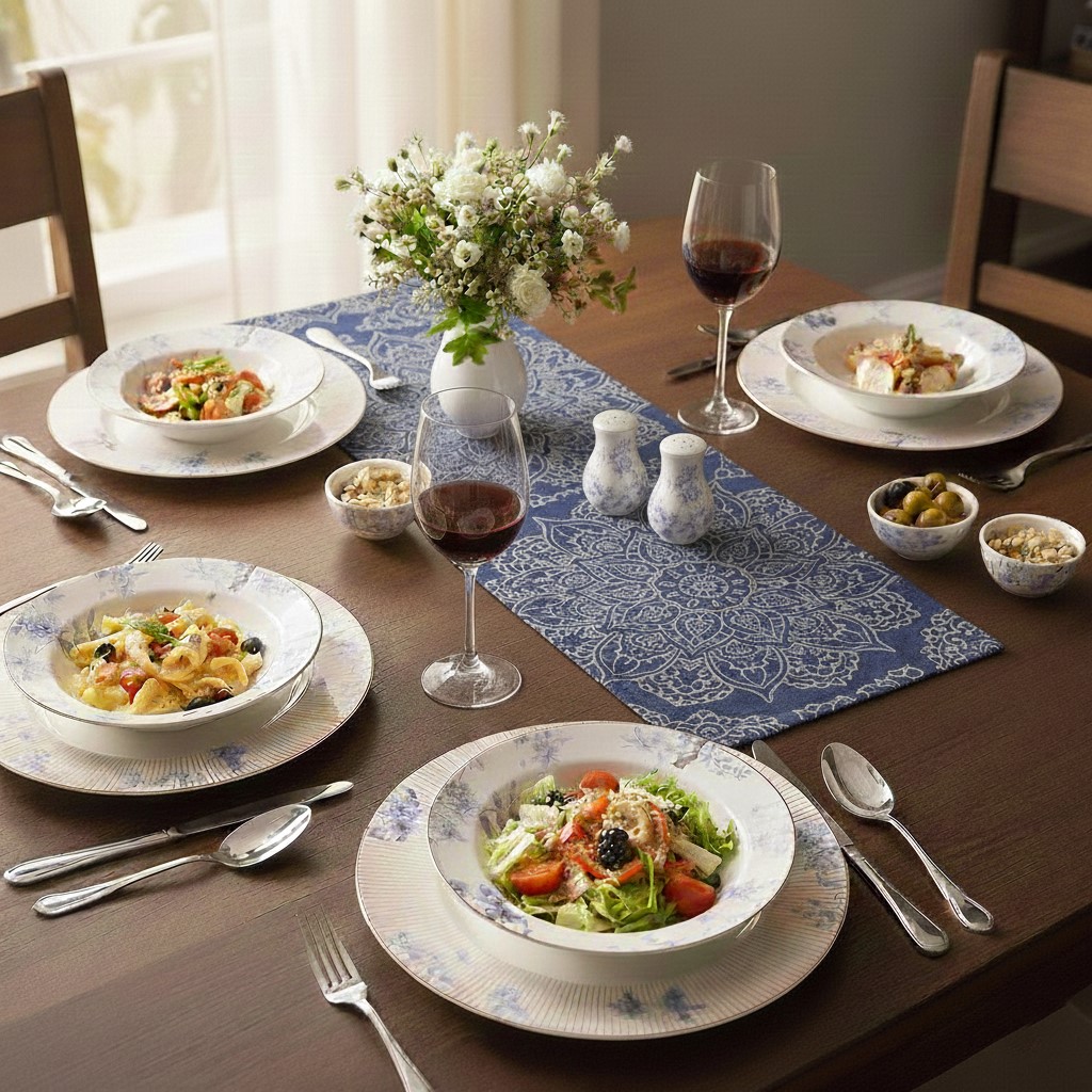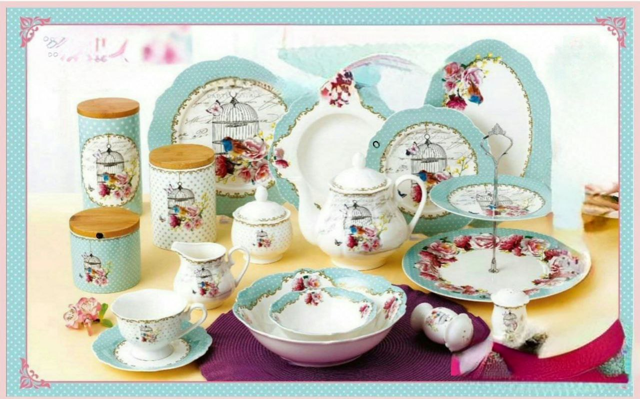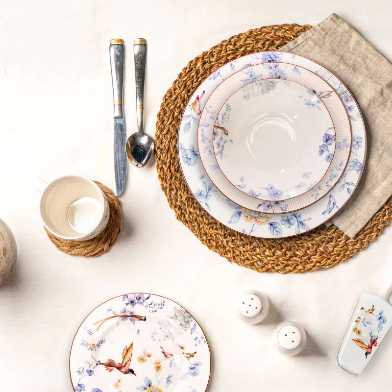 Dinner Set 38 Pieces with Natural Artistic Paintings and Bright Colors Model Spring Birds 004-20