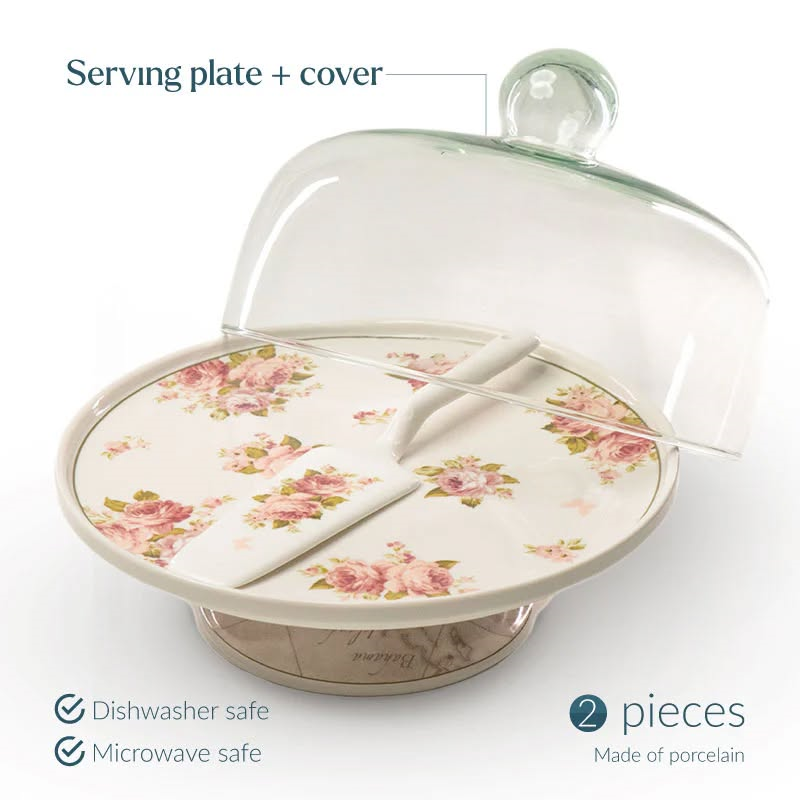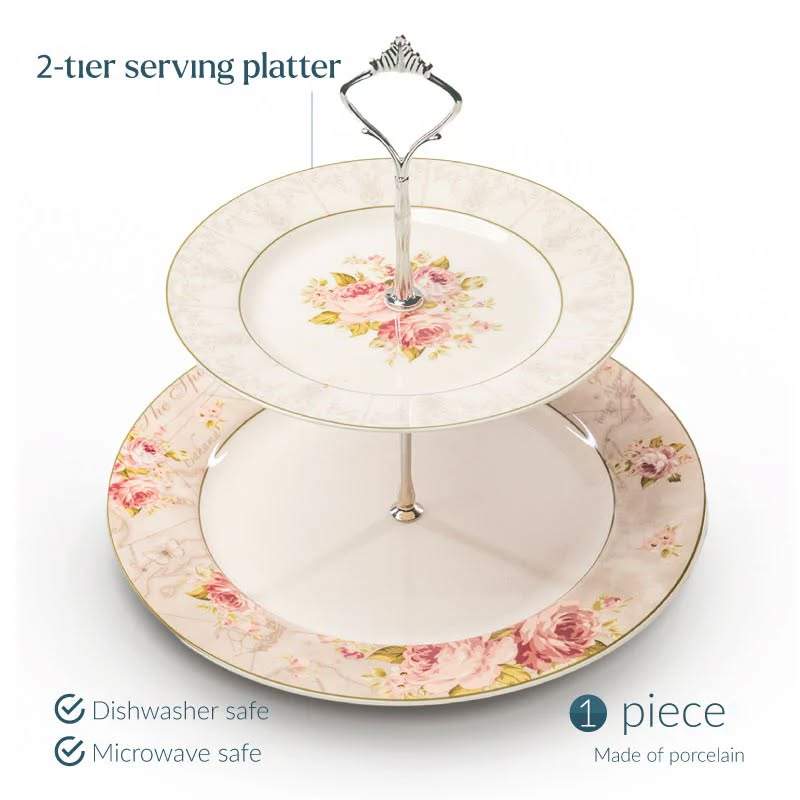 Dinner Set 38 Pieces with Three-Tier Cake Holder Natural Artistic Paintings Model Spring Flowers 17-016