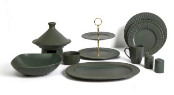 Dinner Set 39 Pieces with Two-Tier Cake Holder Olive Color Model Majestic Elegance