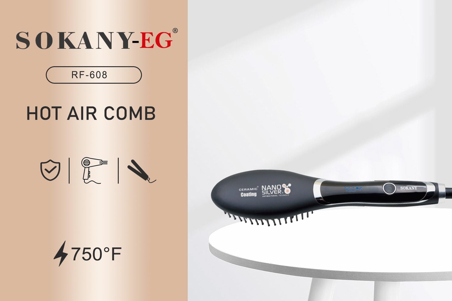 RF608A - Sokany Hair Straightening Brush , 60W , Black